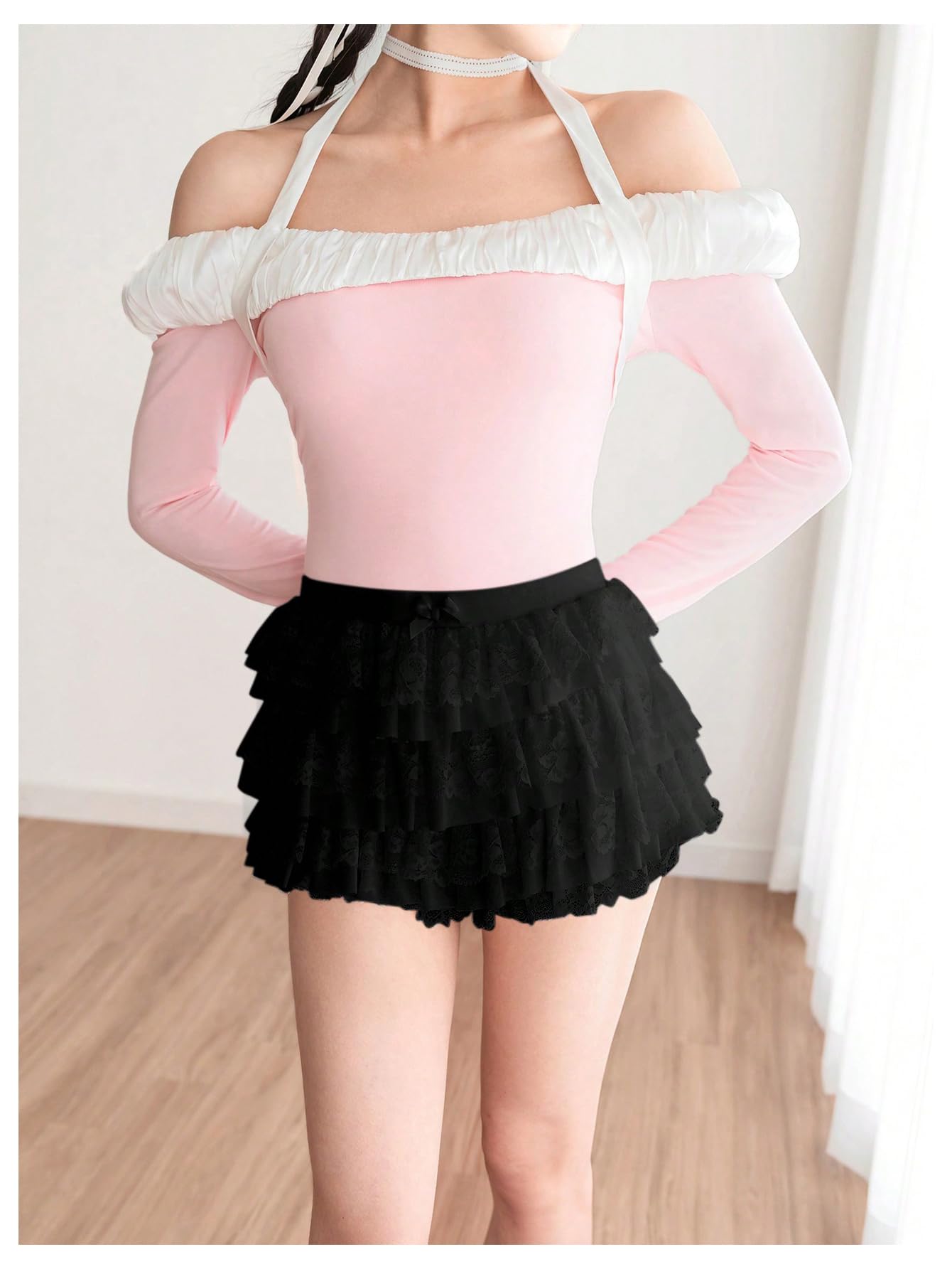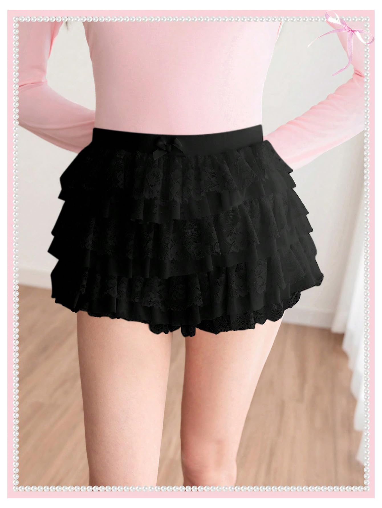 Features: This lace short pants are designed with layered ruffle lace trim, small bow front, elastic waist, low waist and solid color. The shorts have a cute, sweet and fashion style for women.