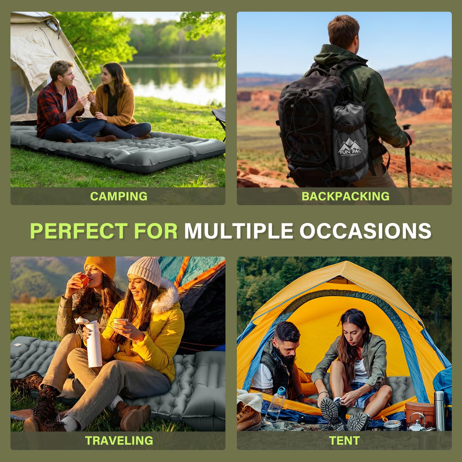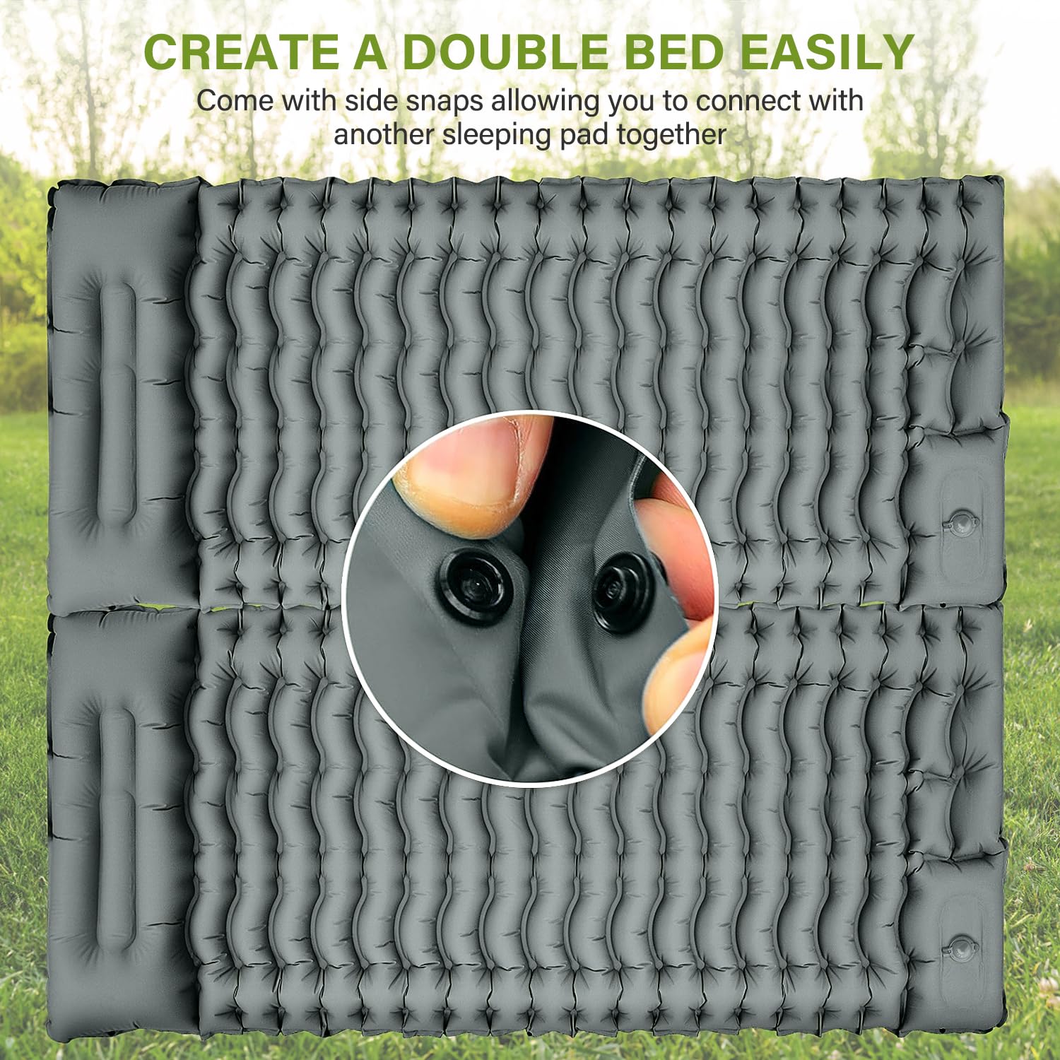 【Connect for Twin Bed & Dual-Color Style】: Easily combine two pads using the side snap buttons to create a spacious double bed. Perfect for couples or family camping. Features stylish reversible color options on each side for versatile aesthetics.