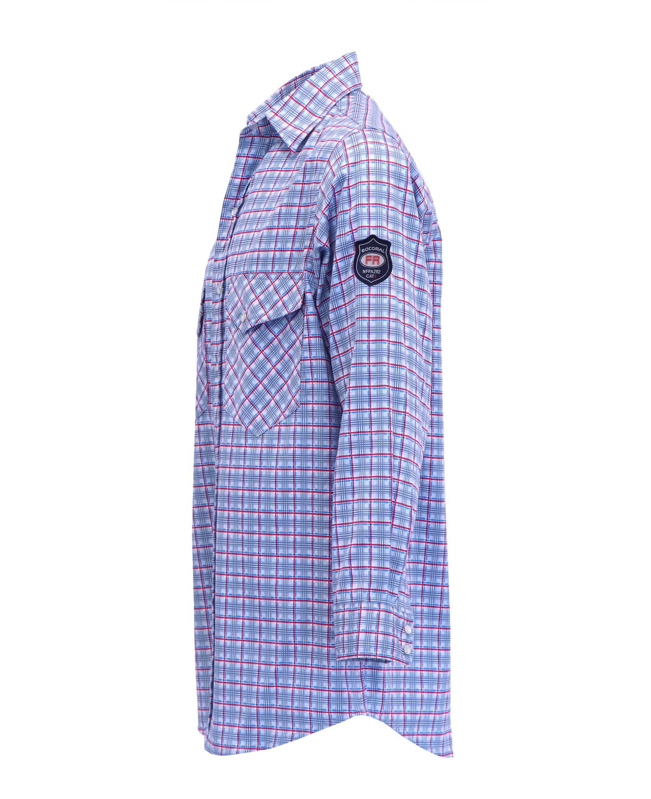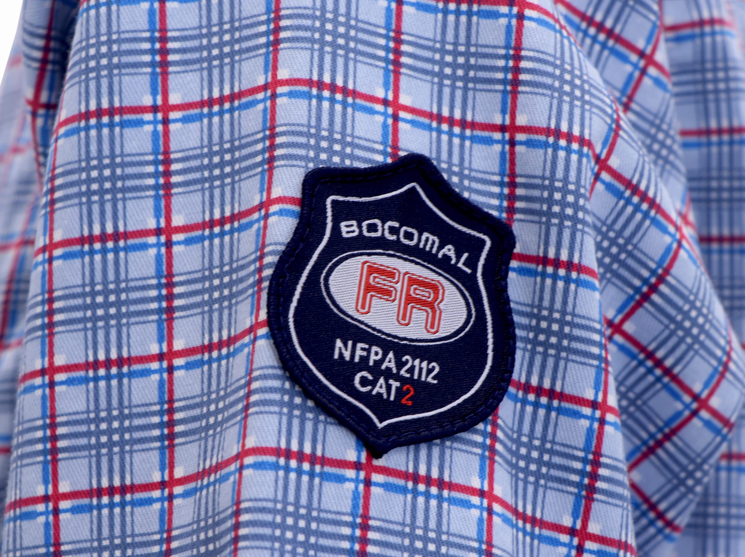 FR MATRIALSοΌ6.5OZ Printed Plaid Cotton Twill FR Treated,FR Buttons,FR Sewing Threads!Clear FR Tag on arms and bottom front.More FR info On Tag About UL Certification.