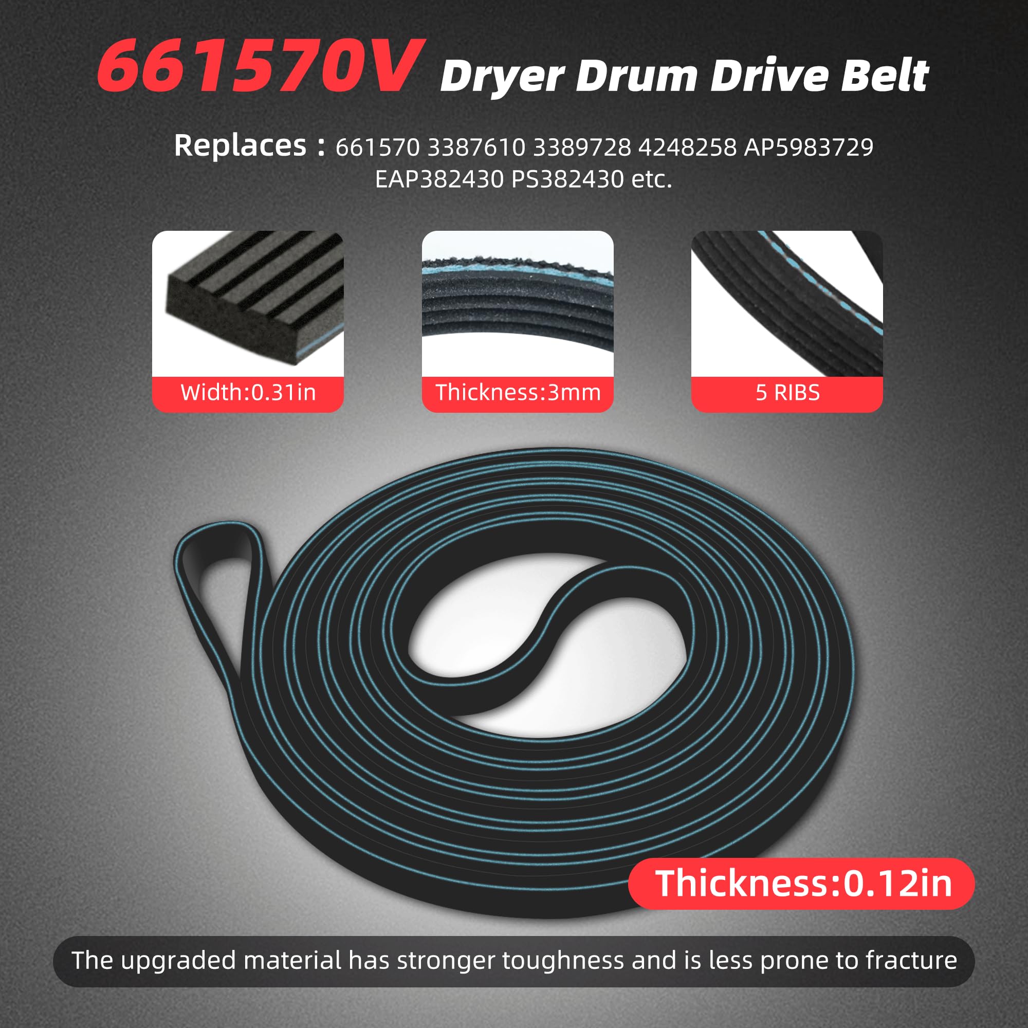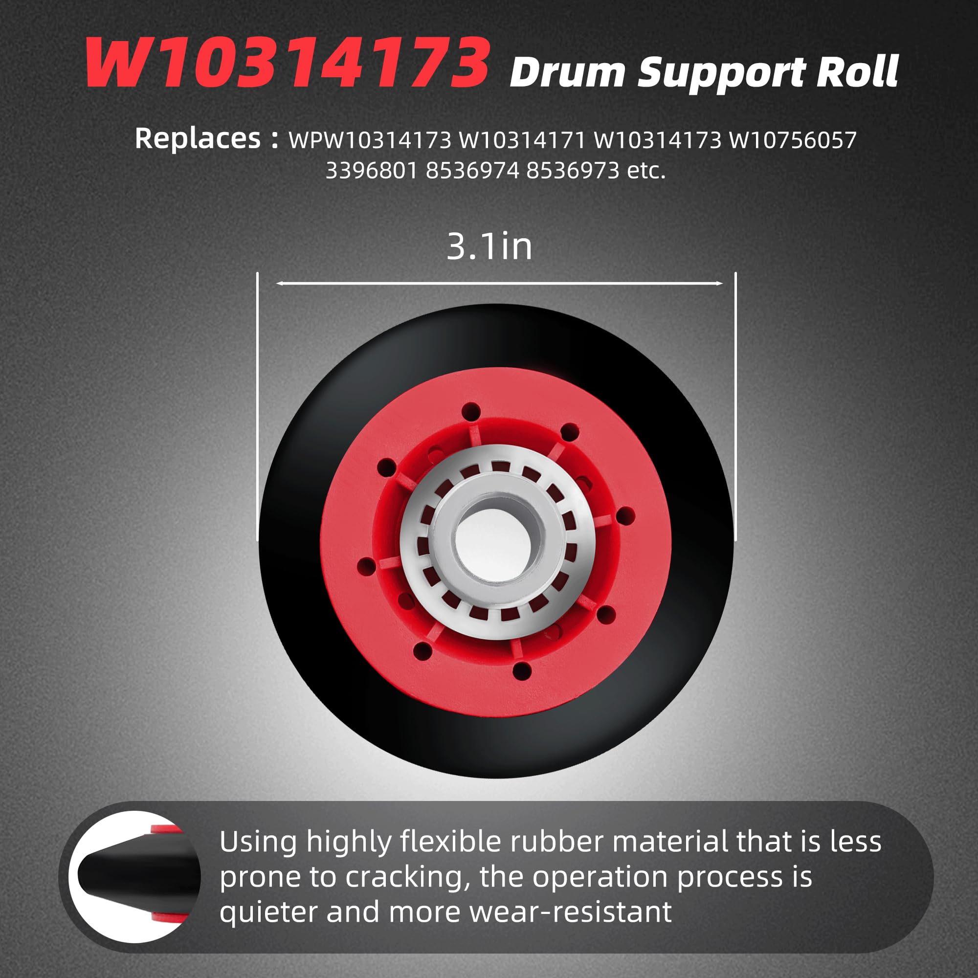 【Repair kits include】: This comprehensive 4392067 Dryer Repair Kit includes everything you need: 5 WPW10314173 dryer drum support roller wheels (with red wheels, tri-rings, and retaining washers), a W10837240 dryer idler pulley assembly with bracket, a durable 661570V dryer drum belt, and a 279640 dryer idler pulley