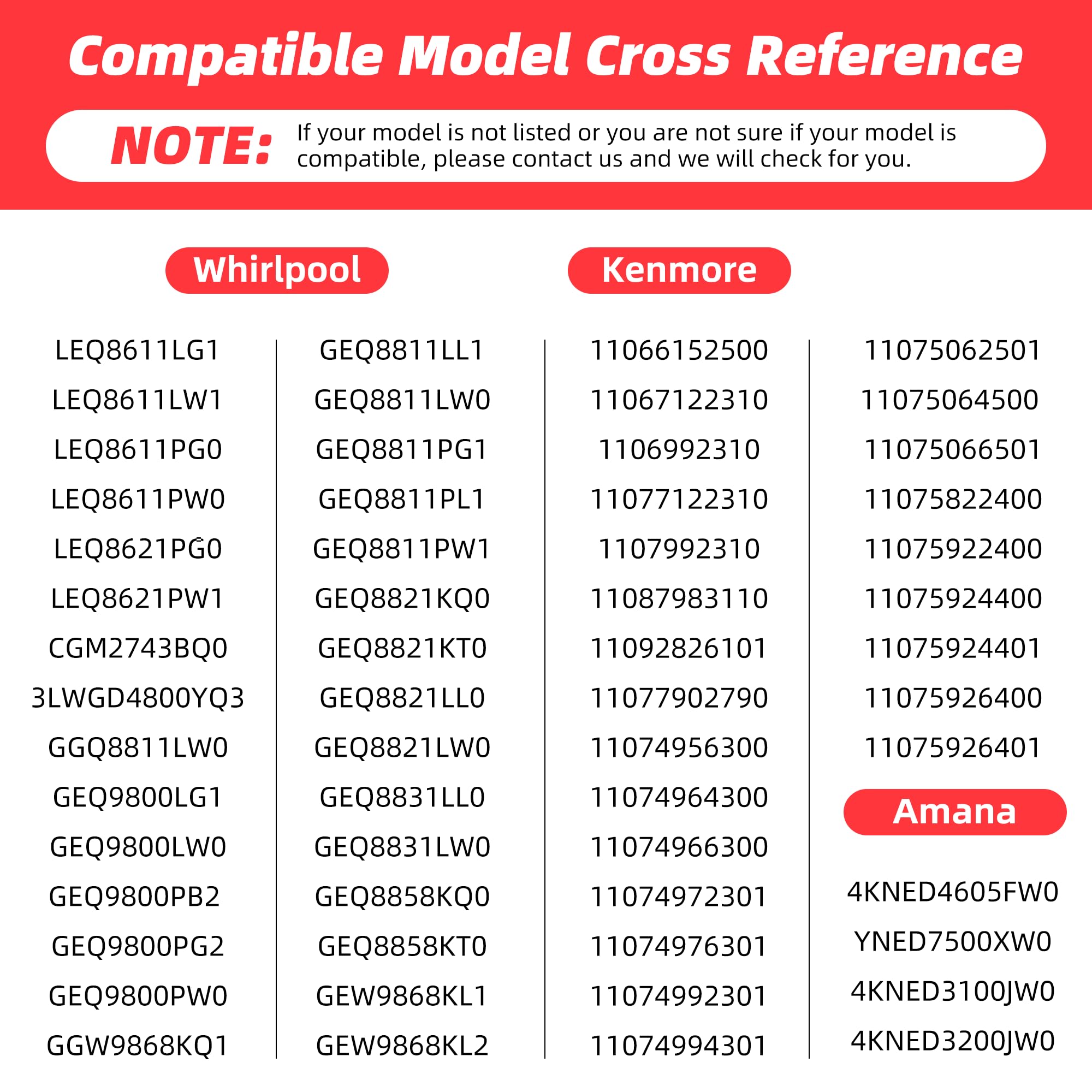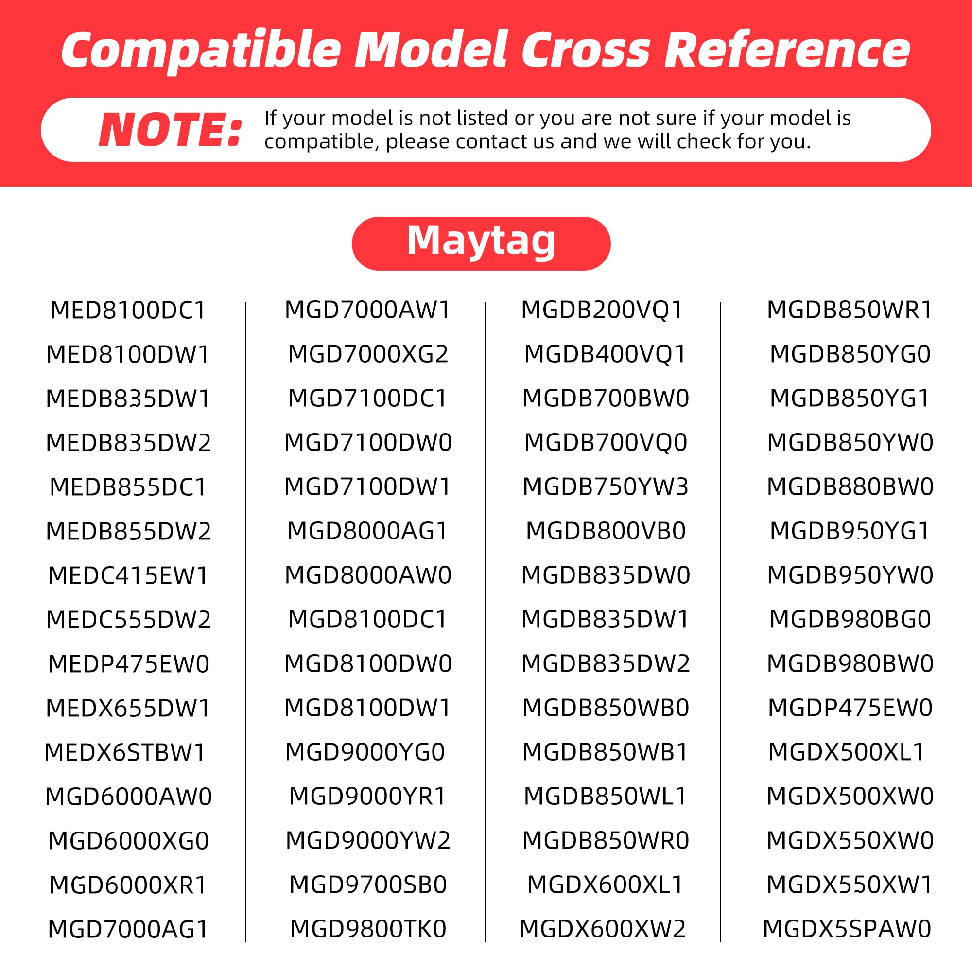 【Compatible Models】:Replaces For Maytag MEDB850YW0 MEDB850YW1 MEDB850YW2 MEDB855DW0 MEDB880BW0 MEDB950YG0 MEDB980BG0 MEDC215EW1 MEDE200XW1 MEDE201YW0 MEDE251YG0 MEDE300VF0 MEDE300VF2