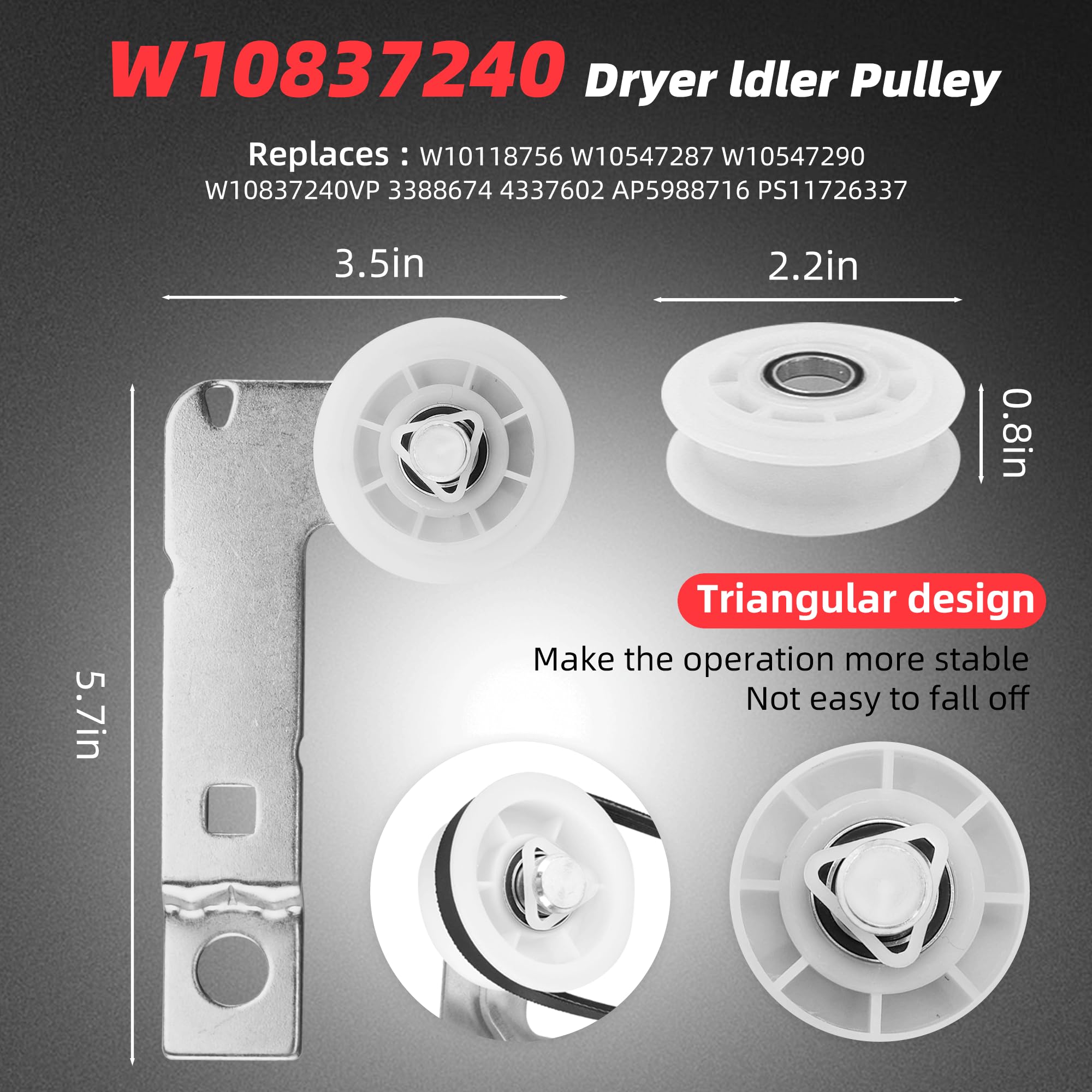4392067 Dryer Repair Kit and W10837240 Dryer Idler Pulley for Maytag Bravos xl Kenmore Elite Whirlpool Duet Dryer Parts,Includes WPW10314173 Drum Roller,661570v Dryer Belt,279640 Idler Pulley