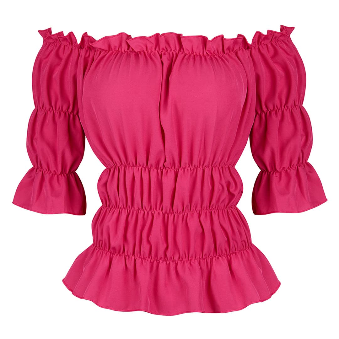 Style: Sexy corset style gothic inspired top, victorian steampunk blouse, renaissance peasant top, gypsy boho shirt. This renaissance peasant blouse is off shoulder design, it can also be worn as crew neck tops.