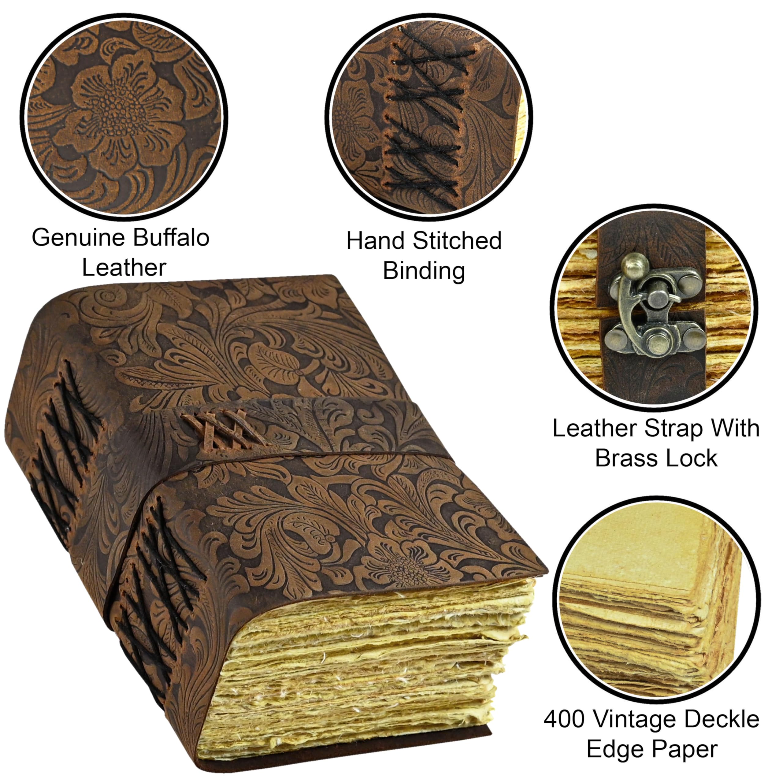 Antique Paper - 400 Page Vintage Journal Is Made Of Unique Vintage Paper Which Looks Like It Was Pulled From History. You Will Love The Old Looking Handmade Cotton Paper (200 Pages) Which Is Unique To Our Vintage Journals. Use Any Kind Of Pen - Sketch, Write On Your Journal Notebook With A Calligraphy Pen Fountain Pen, Brush Pen, Ball Pen, Acrylic Colours, Watercolor And Many More. Soft Supple Thick Genuine Leather - The Leather Journal Is Made From Naturally Tanned Full Grain Leather Which Feels And Smells Amazing. It'S Soft And Very Comfortable In The Hands. Don'T Be Fooled With Competitors Using Cheap Substitutes, This Antique Diary For Women Steal The Real Deal. Stylishly Medieval- Ancient Looking Rustic Cotton Paper Combined With The Beauty Of Distressed Leather, Hand Stitched By Artisans, Creates A arthur morgan Keepsake You Will Cherish Forever. Makes A Great Gift For The Men, Women, And Wiccans In Your Life! Why Not To Add The Grimoire Spell Book Into Your Library. Sturdy Binding, Leather Wraparound And Key - Sturdy Hand Stitched Binding To Make Sure That No Paper Comes Out Loose.The Leather Wraparound With A Nice Key That Slips In Will Make Sure That The Papers Inside The Vintage Books Journal Leather Are Safe And Secure. Leather Junk Notebooks Serves the Best. as Your Personal Diary.