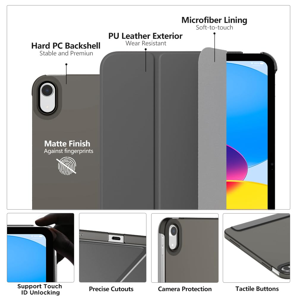Excellent Quality : Our iPad 11th/10th Gen 11/10.9 inch case 2025/2022 is made of premium PU leather exterior, Soft microfiber lining and coverage with translucent PC back shell, Providing total full protection for your precious tablet