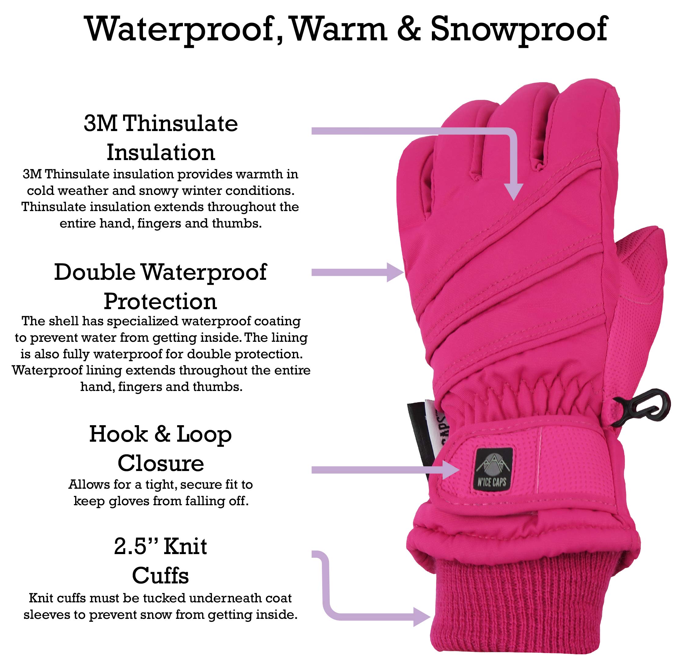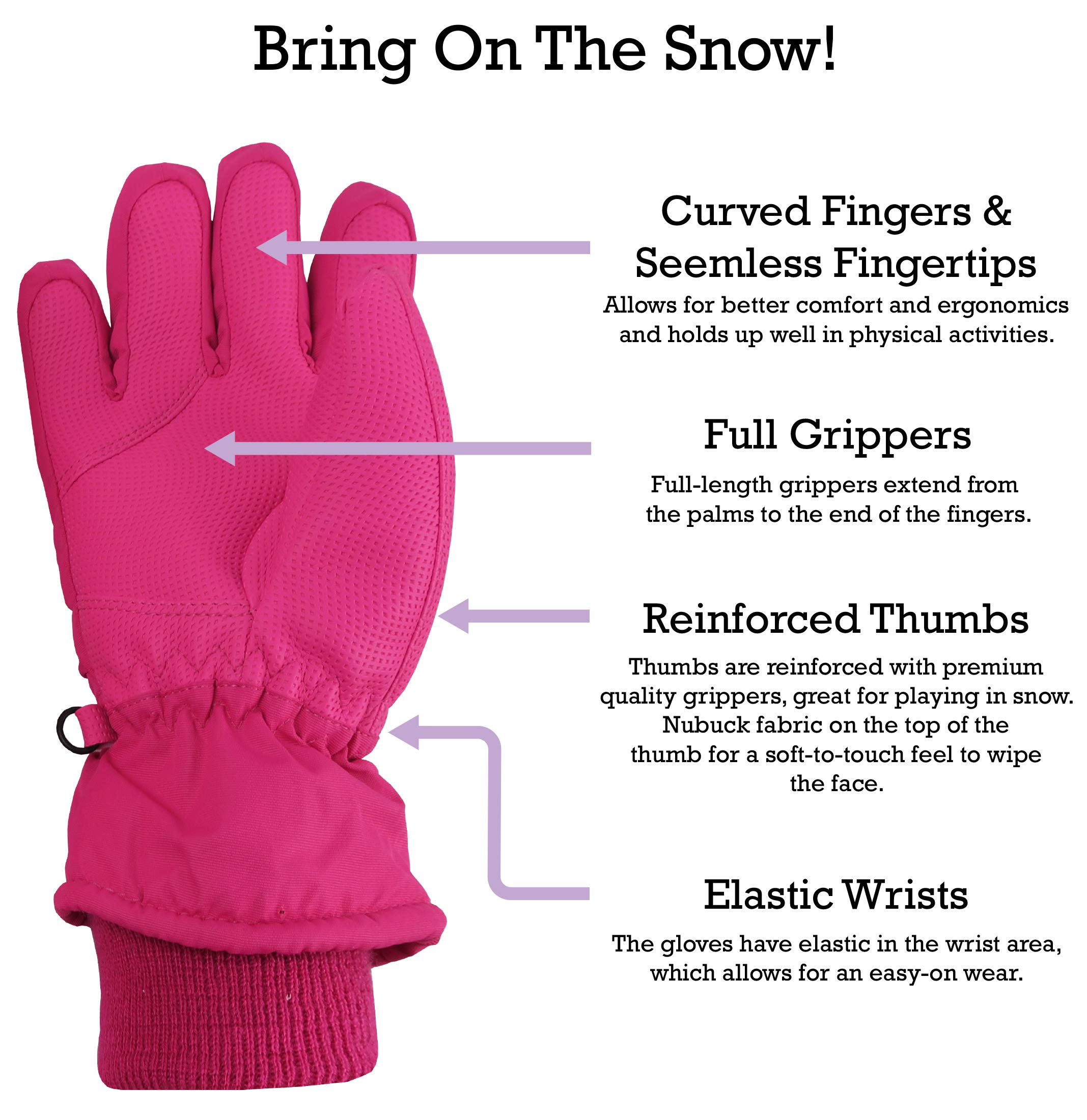 WATERPROOF, WARM AND SNOW-PROOF: The children's snow gloves are insulated with 3M Thinsulate for warmth in cold weather. The youth gloves are fully waterproof and keep hands dry in wet, snowy and icy conditions