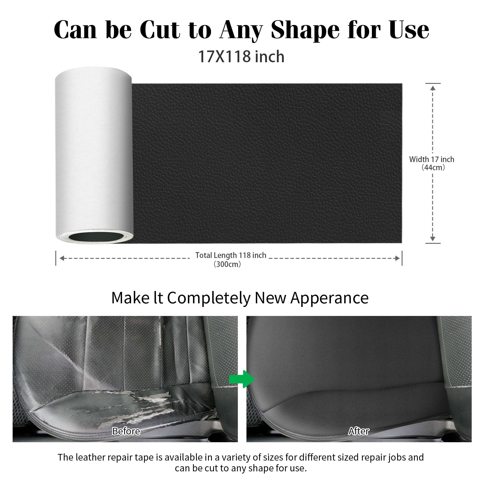 Wide Application Leather Repair Tape: Our self-adhesive leather repair kit can quickly cover cracks, worn, holes, burns, scratches, and other defects on leather, vinyl and upholstery such as sofas, couch, furniture, armchair, shoes and car cushions, also useful for decor projects and crafts too