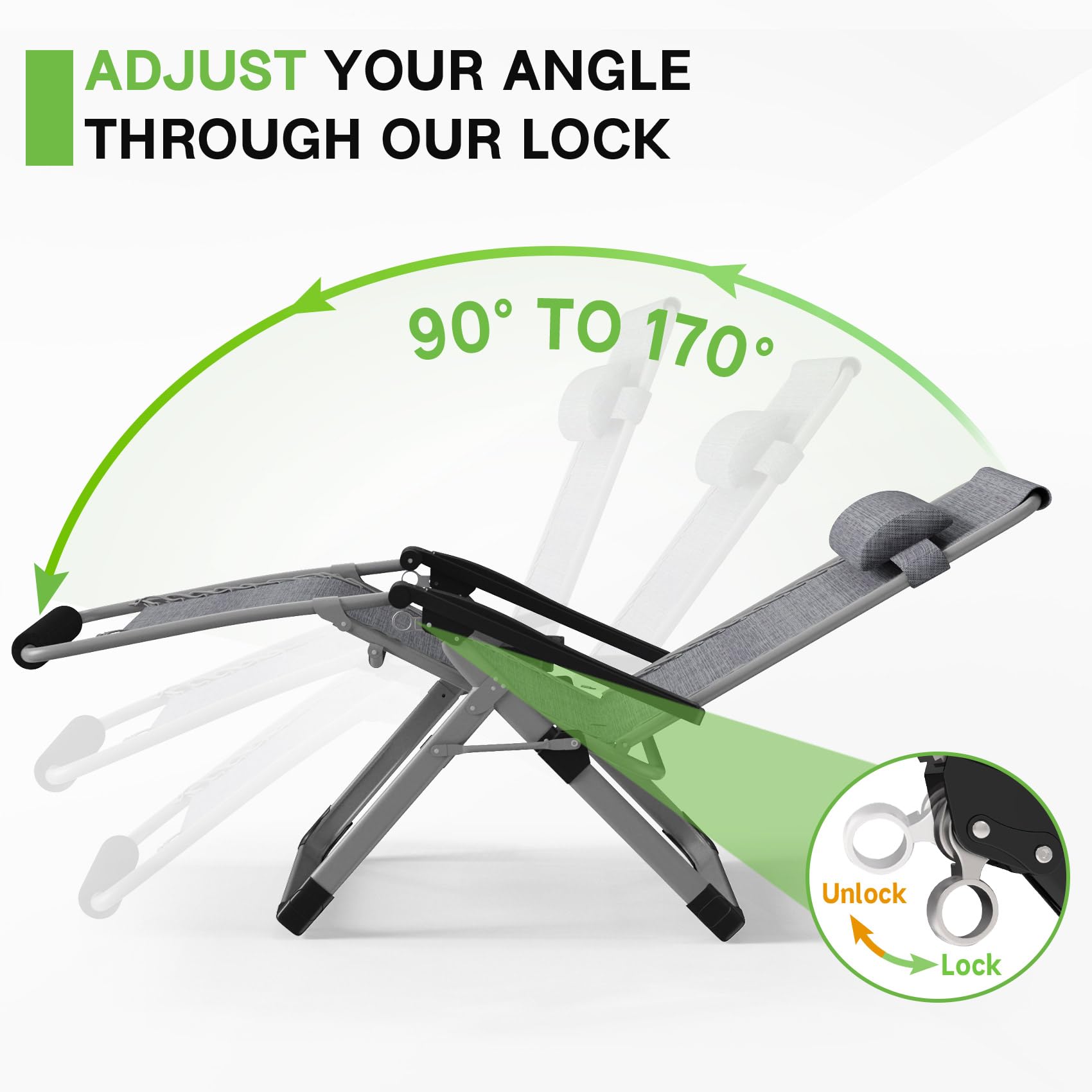 【Experience Zero Gravity Comfort】Melt into the cloud-like embrace of our adjustable angle zero gravity recliner, designed to cradle your body and reduce spinal strain. Adjust the 90-170° angle to find your perfect position, whether you're unwinding by the pool or enjoying a serene moment in your garden.
