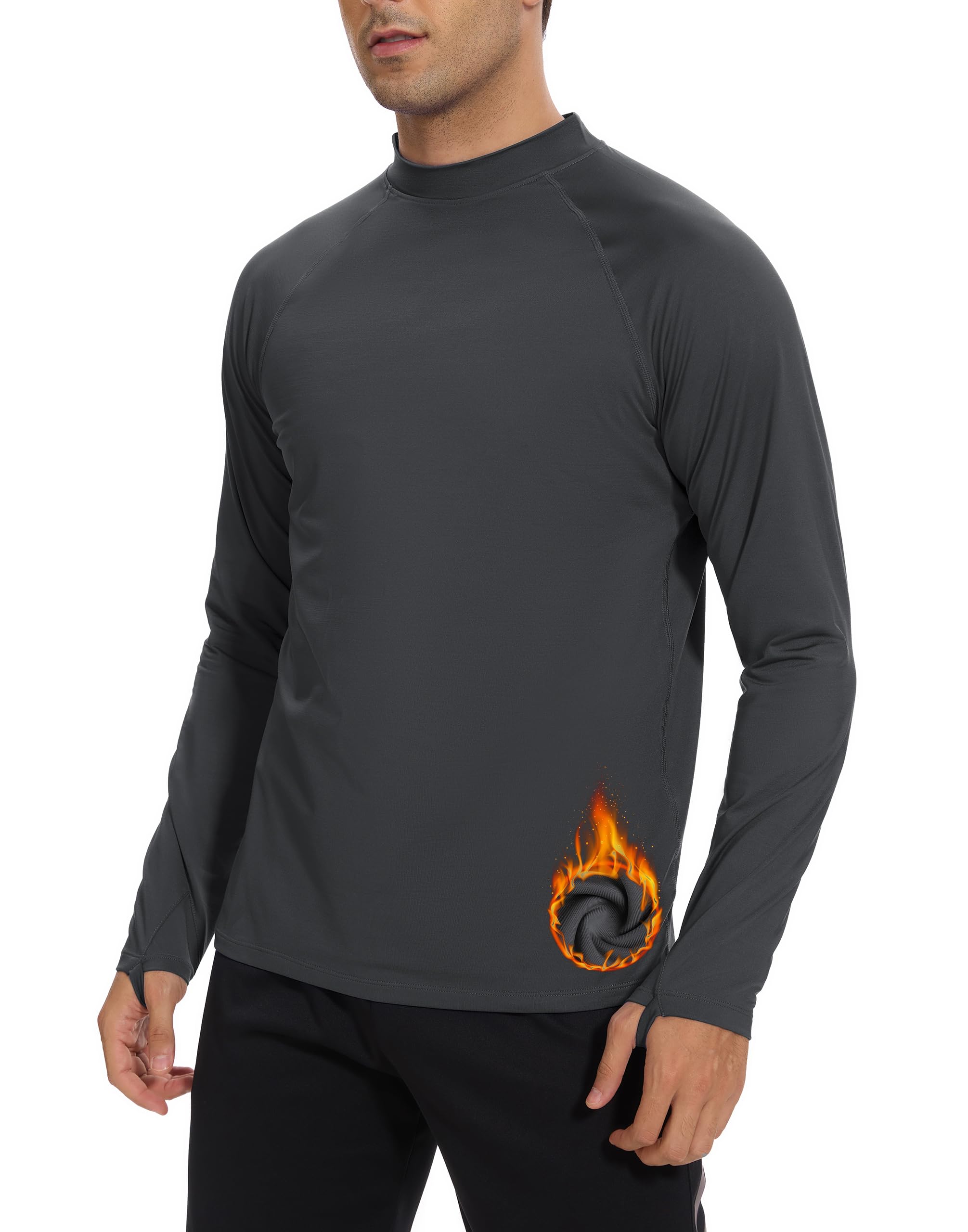 Fleece Mock Turtleneck Thermal Shirts:Its made of polyester/spandex blend fabric with high density fleece lined,lock your body heat well,perfect heat retention minimizing heat loss making perfect for outdoor activities in cold weather.