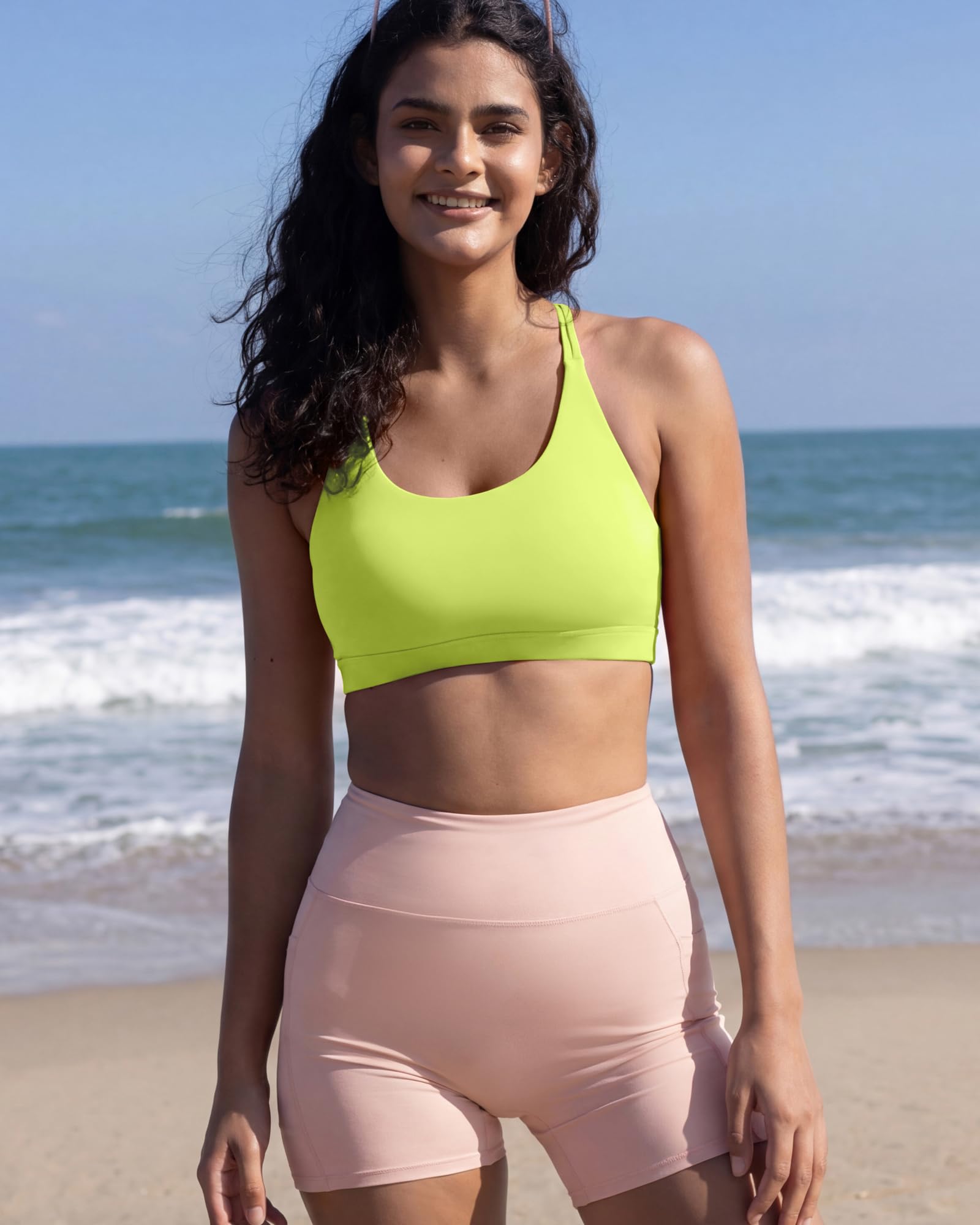 √YOUR SECURE FIT - Strappy design meets sporty style. Super soft scoop neckline with light, removable pads. Open cutout back styling sports bras for women medium support, widen band underneath the breast ensures a tight secure fit. Removable cups for extra coverage. The removable vertical cotton bra pads are easy to clean.The padded sports bra which always retains its shape and prevent bra bulges, caresses your figure to adjust to your curves.