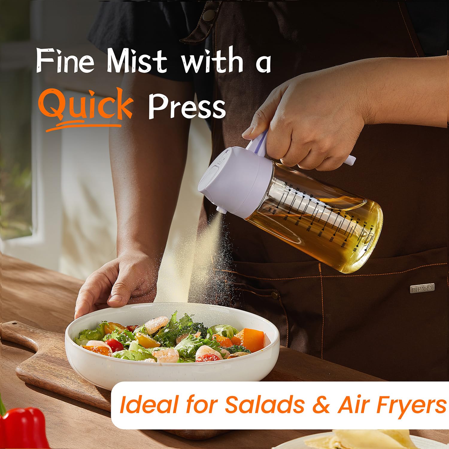 Dual Dispensing: This 2 in 1 oil dispenser and oil sprayer allows you to spray or pour with ease. It’s a versatile oil dispenser bottle spray and pour solution, keeping your kitchen organized and efficient