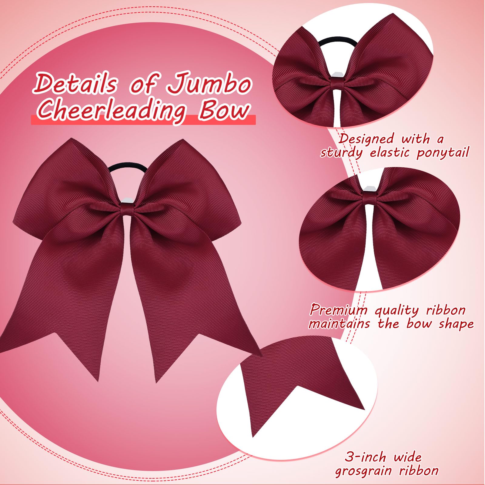 Match many outfits: the maroon jumbo cheer hair bows are proper for team cheer competitions, tournaments, photography, party, festival or any other special events; Also appropriate for everyday use, wear them to school, pair them with dresses, jeans and T-shirts, backpacks and lockers decoration, Christmas tree ornament and so on