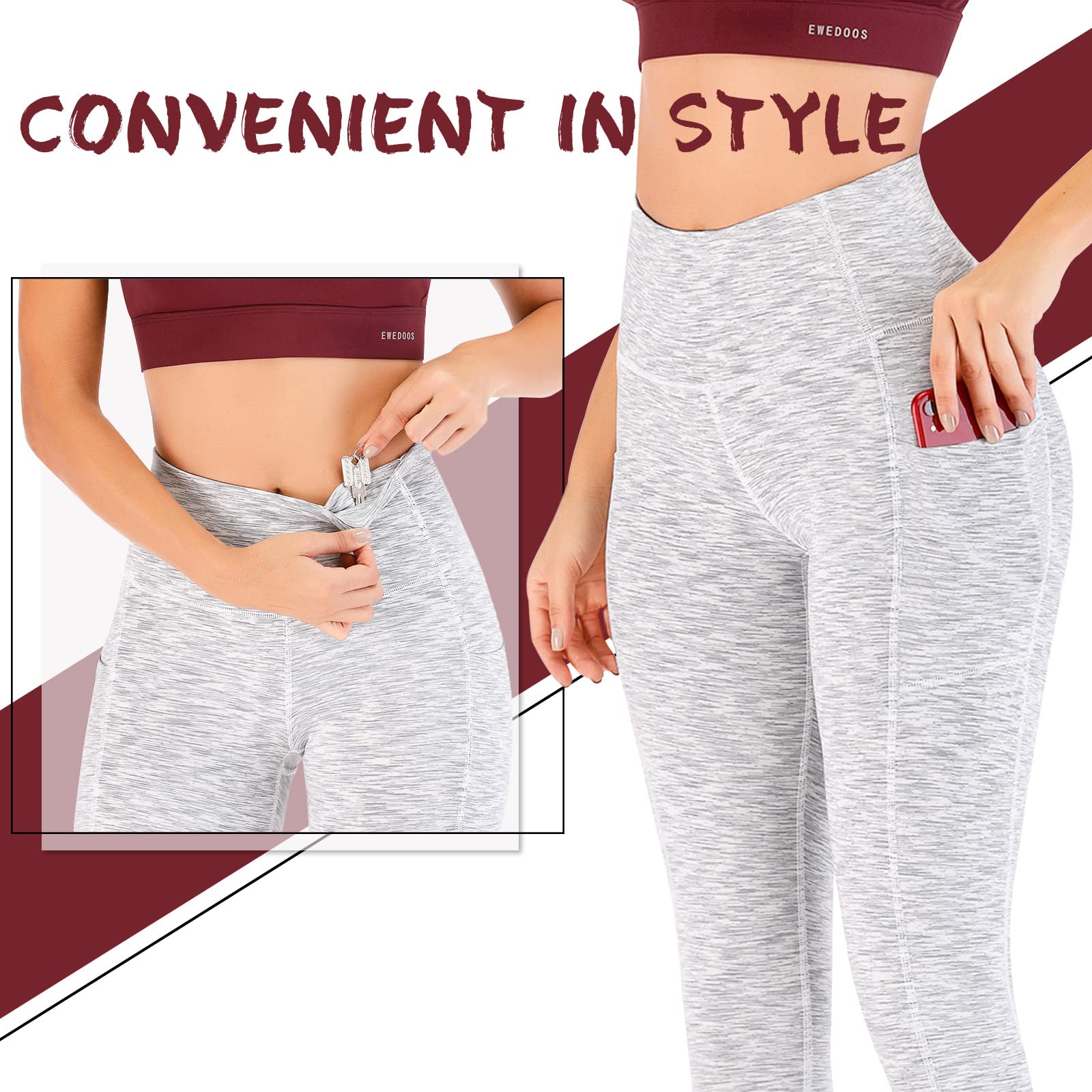 Womens Yoga Pants With 3 Pockets: Ewedoos squat-proof leggings with pockets for women feature 2 large side pockets and 1 drop-in pocket, which easily store your phone or other essentials. They're the pair you'll reach for whether you need something for your everyday run, everyday practice or just every day