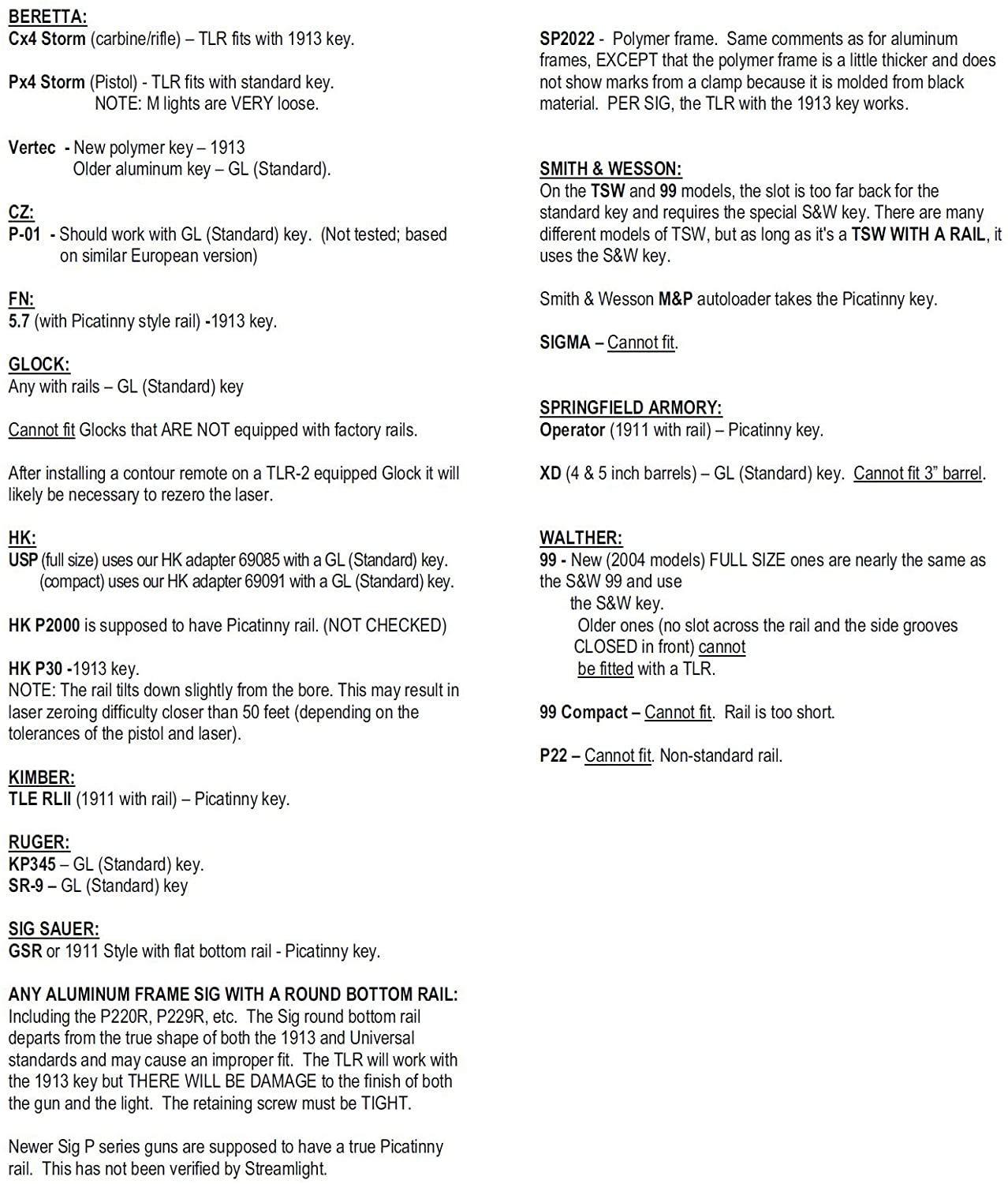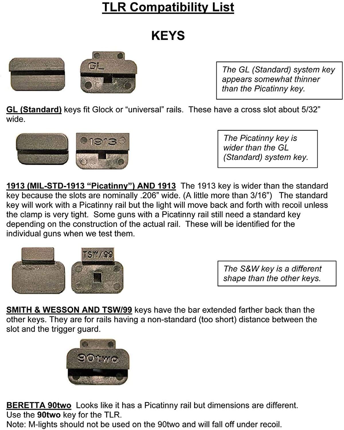 Specific Compatibility: Mounts directly to handguns with Glock-style rails and Picatinny rails only; Includes keys for Glock-style, MIL-STD-1913 (Picatinny) rails, Beretta 90two, S&W 99, S&W TSW and Sig P320; verify compatibility and fitment prior to purchase