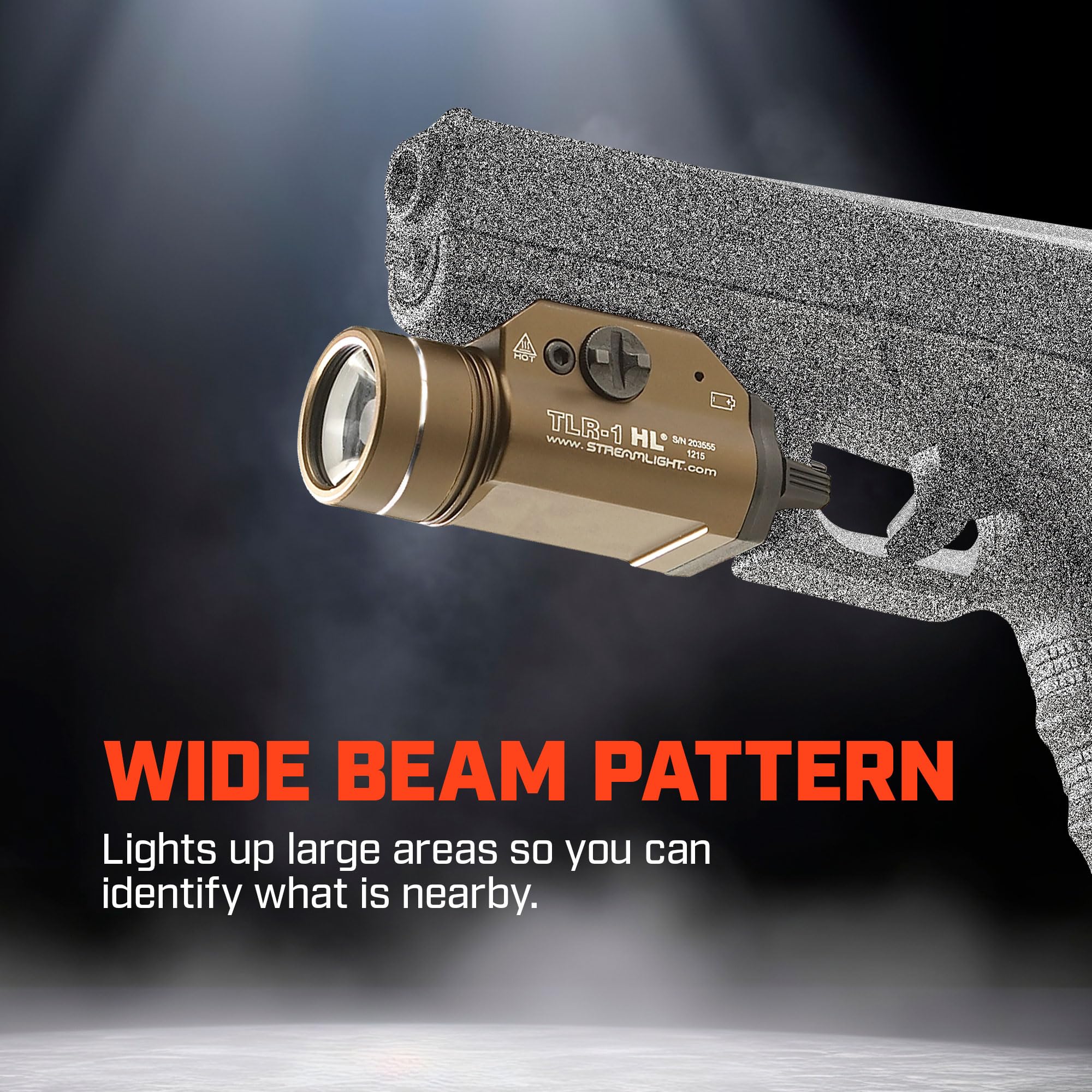 The Streamlight 69266 TLR-1 HL combines 1,000 Lumens of bright tactical lighting with a strobe feature for disorienting threats and signaling in emergencies. This weapon-mounted light provides a blinding beam with far-reaching illumination and wide peripheral coverage, enhancing target identification in critical moments. The strobe function is easily activated via the ambidextrous switch, giving users an additional tactical advantage when needed. Built Streamlight tough from aircraft-grade aluminum and sealed with IPX7 waterproofing, the 69296 TLR-1 HL withstands demanding environments while remaining lightweight and easy to handle. The rail grip clamp ensures quick, tool-free mounting to most firearms. Verify compatibility and fitment with Streamlight’s TLR Fit Guide before purchase. With shockproof LED technology, long runtime, and durable construction, the Streamlight 69266 delivers professional-grade reliability for law enforcement, security, and personal defense users seeking both power and tactical versatility.