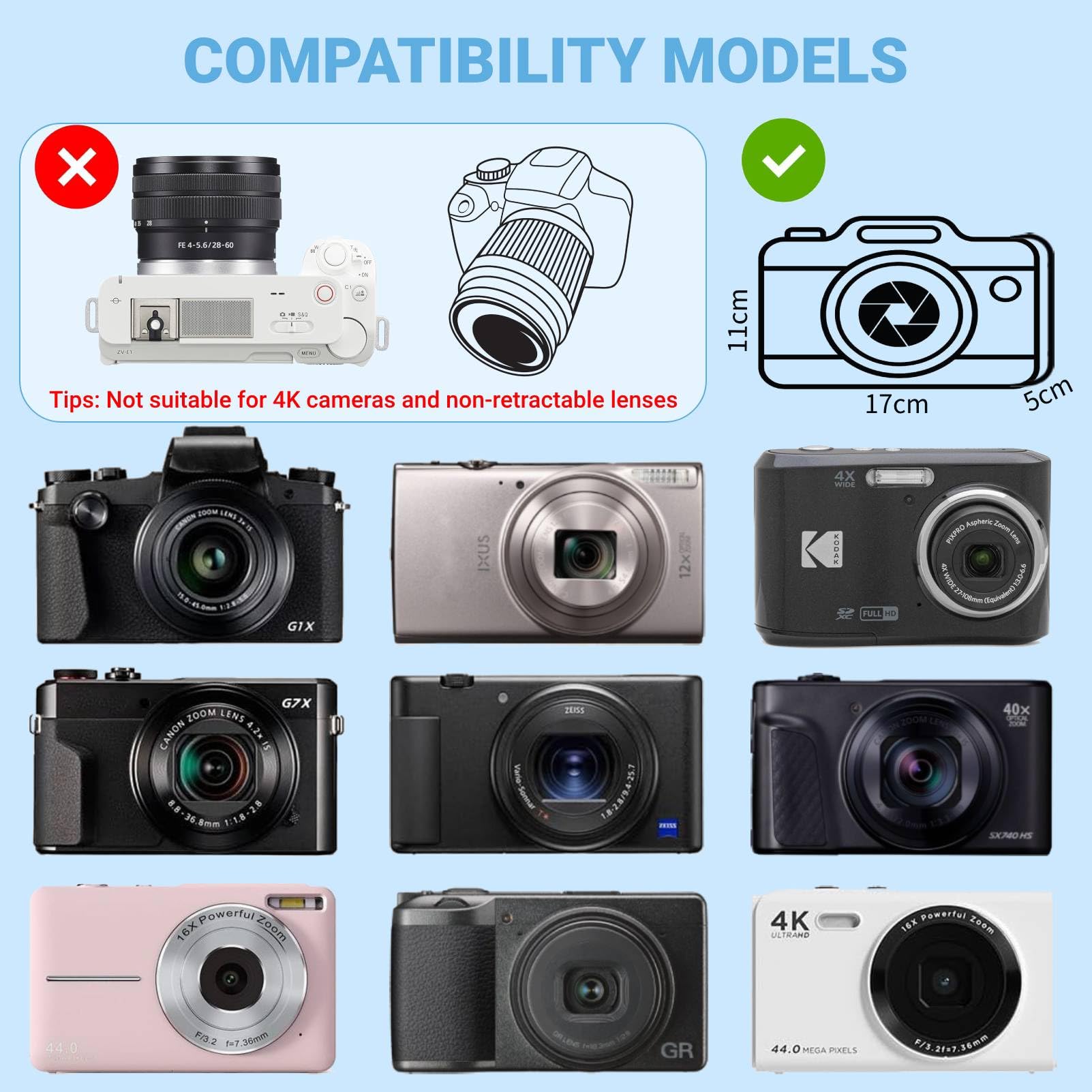 Effortless Compatibility: External Dimension:7*4.7*3.5", Internal Dimension:6.7*4.3*2".This camera case is designed to fit digital cameras such as the Sony DSCW800/DSCW830, Cannon PowerShot ELPH 180/190 and other appropriately sized cameras, charger and USB cable, to meet your various kinds of needs.