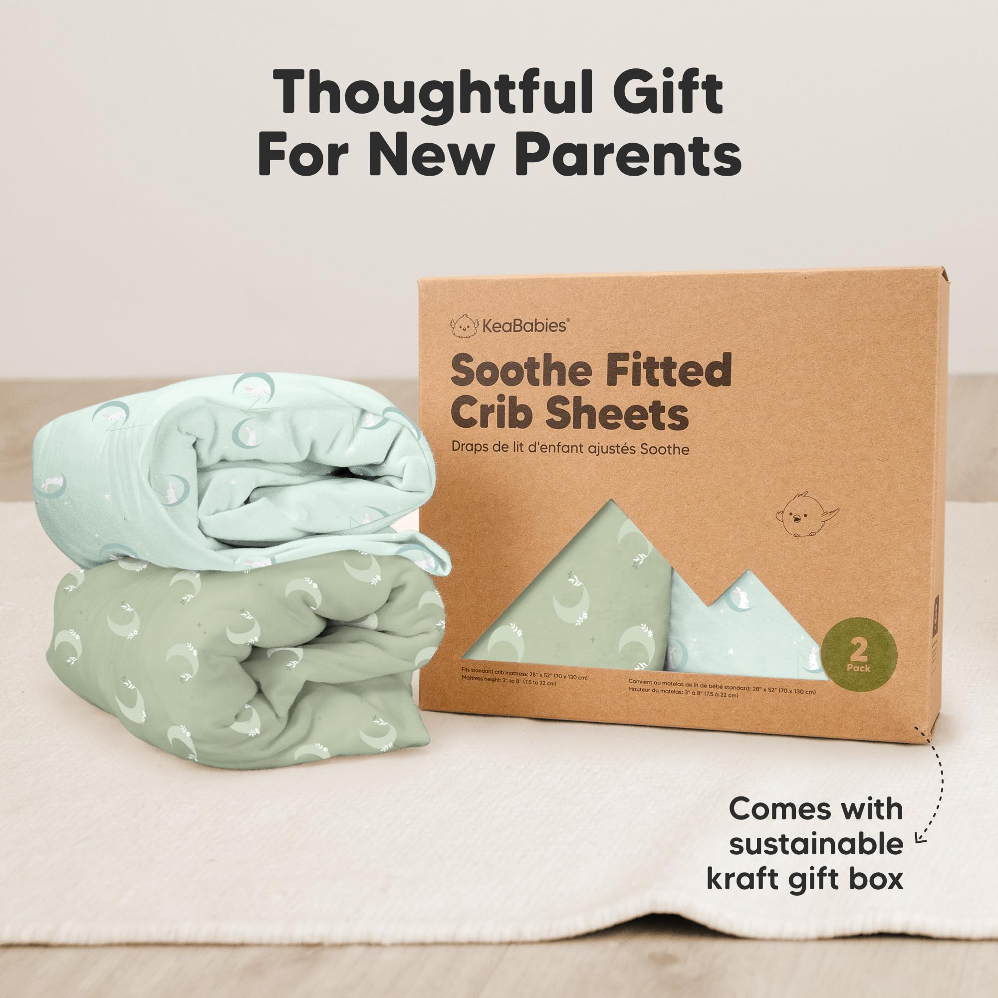 2-Pack Baby Crib Sheets - KeaBabies Soothe Fitted Crib Sheets for boys and girls; fit standard crib mattresses (52"x28" with height 3" to 8") perfectly, offering your baby a safe and restful sleep.