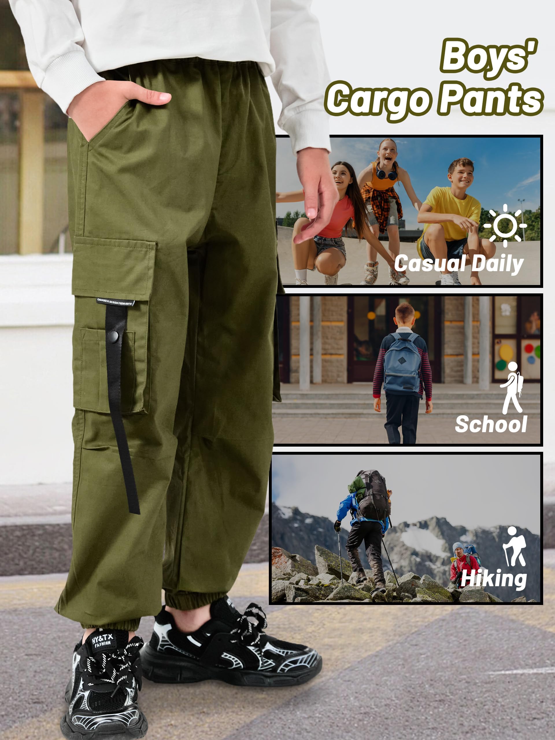 【Multi Pockets】These stylish every day wear boys cargo pants feature tons of pockets to carry his favorite toys & tools!