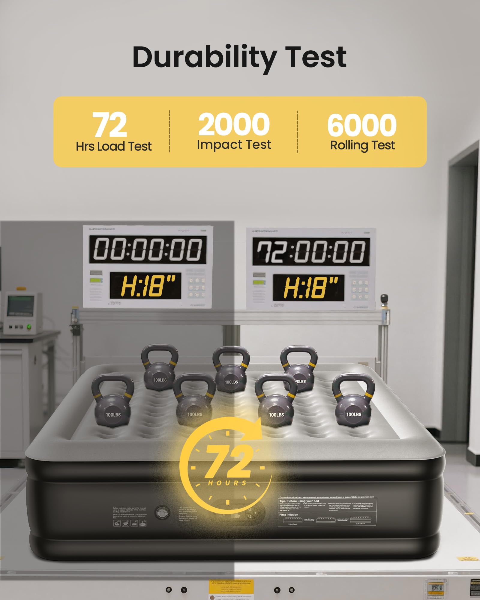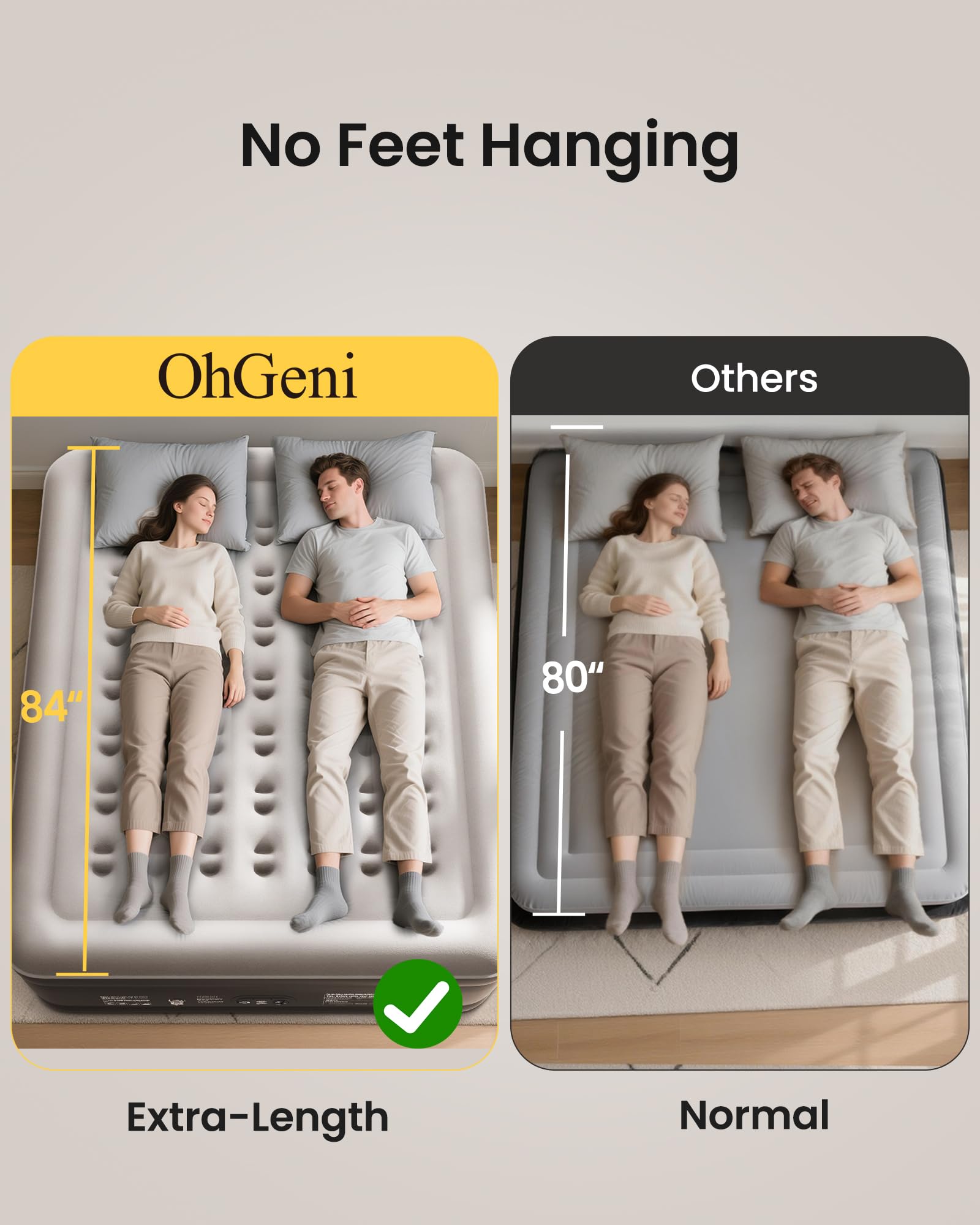 ๐๐ง๐ซ๐ข๐ฏ๐๐ฅ๐๐ ๐๐จ๐ฆ๐๐จ๐ซ๐ญ: Experience fast, firm support with the OhGeni air mattress. Its powerful 110V pump inflates or deflates the mattress fully in just 3 minutes. The smart Air Coil System conforms to your bodyโs shape, evenly distributing weight to prevent sinking and reduce back pressure