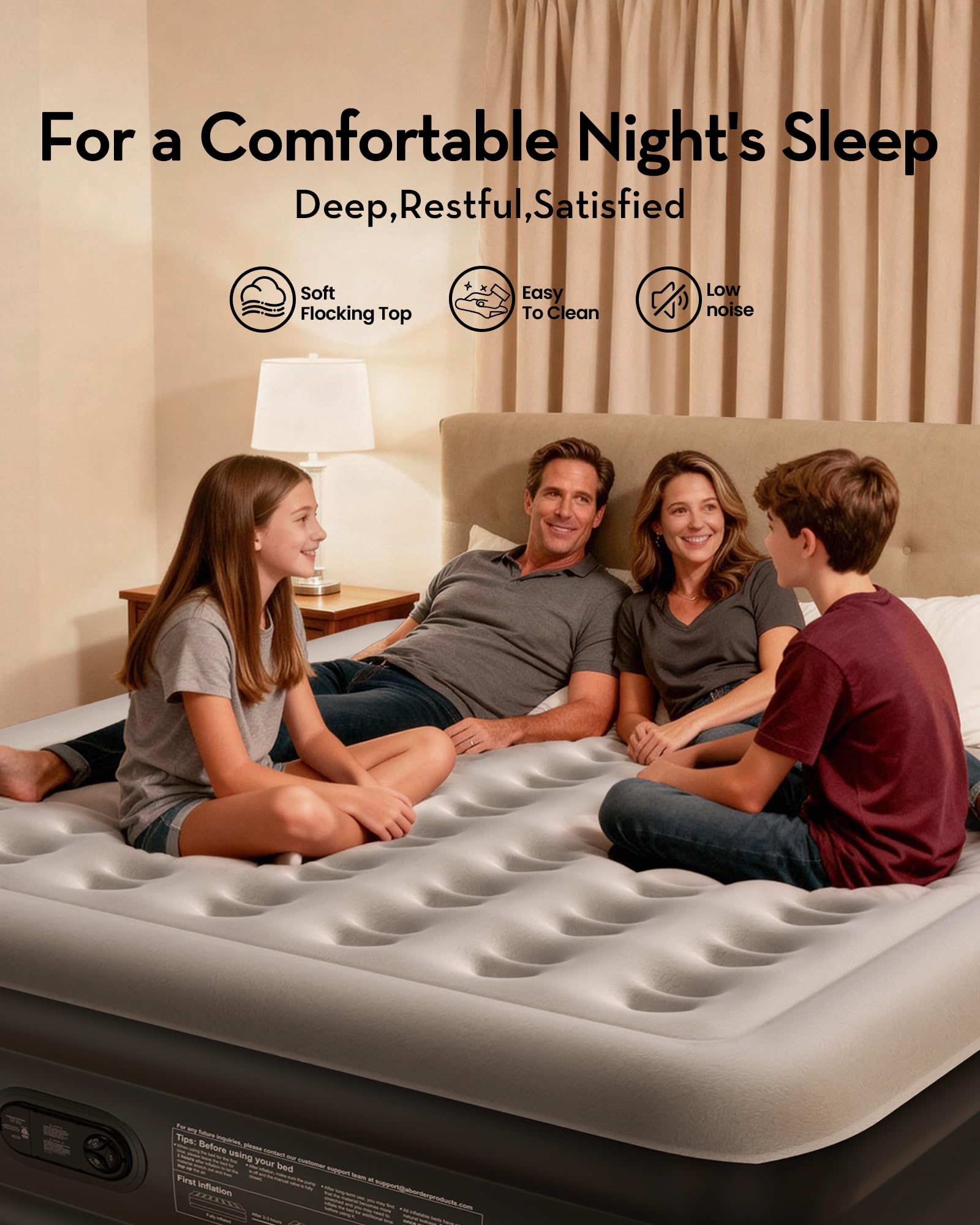 ๐๐๐ซ๐ฌ๐จ๐ง๐๐ฅ๐ข๐ณ๐๐ ๐๐จ๐ฆ๐๐จ๐ซ๐ญ: Customize your sleep effortlessly. Our quick-inflating airbed lets you adjust firmness by simply adding or releasing air. Whether you prefer a plush feel or firm support, you' re in control of your perfect night' s rest
