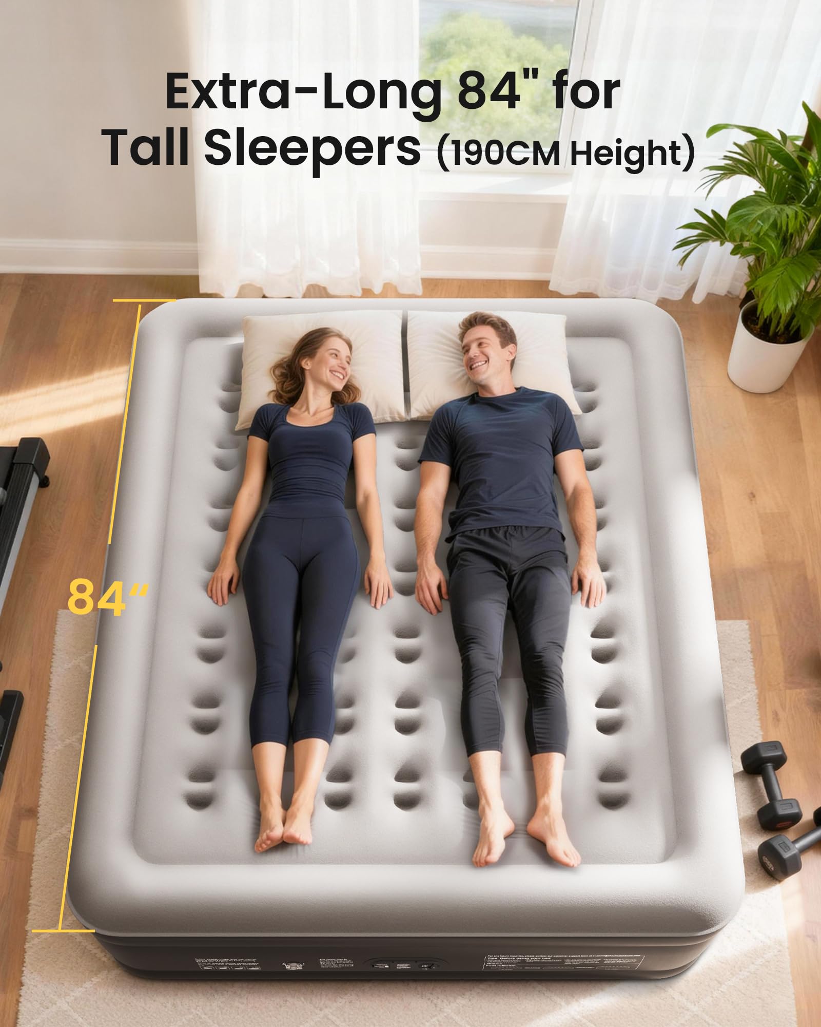 ๐๐ฉ๐๐๐-๐๐๐ฏ๐ข๐ง๐ ๐๐๐ฌ๐ข๐ ๐ง: The OhGeni California King Air Mattress (84" x 72" x 18") delivers cal king-size comfort while saving space. It inflates in minutes to accommodate overnight guests and supports up to 700 lbs. When not in use, simply deflate and pack it away in the included bag for hassle-free storage