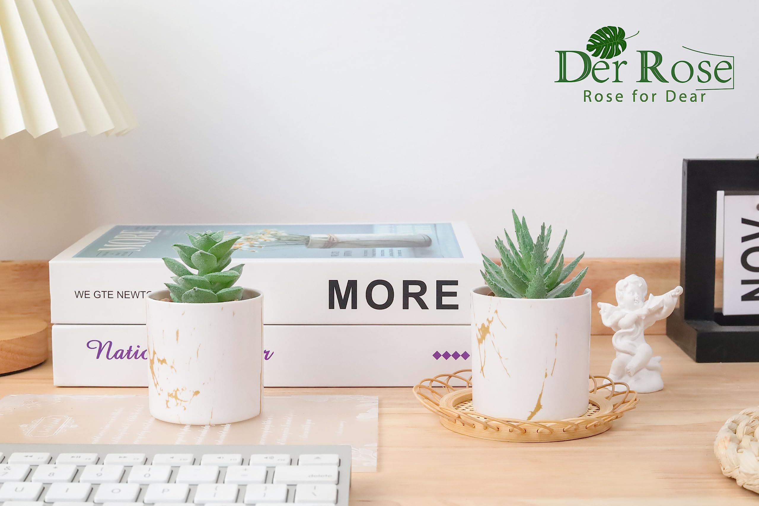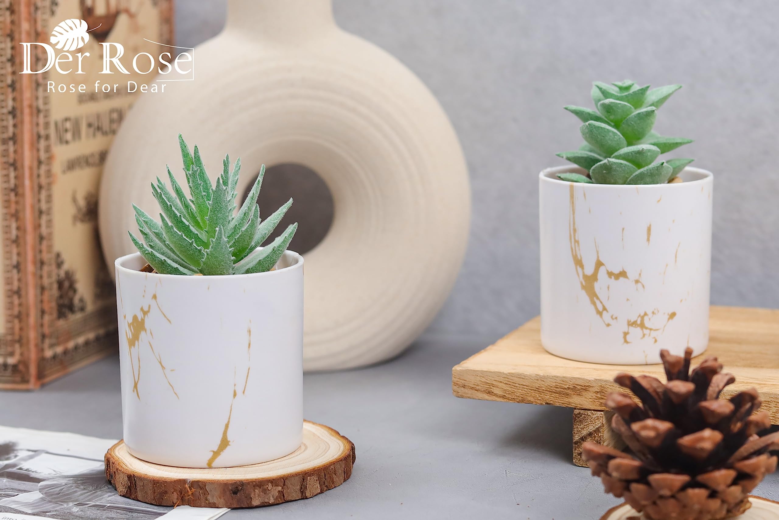 Unique Potted Plant Design: Our mini artficial plants indoor are simulated with bright colors, fine workmanship and realistic appearance. These faux plants indoor are placed in a white plastic pot with gold stripes. There are small pebbles on it, which makes the fake succulents plants look lifelike