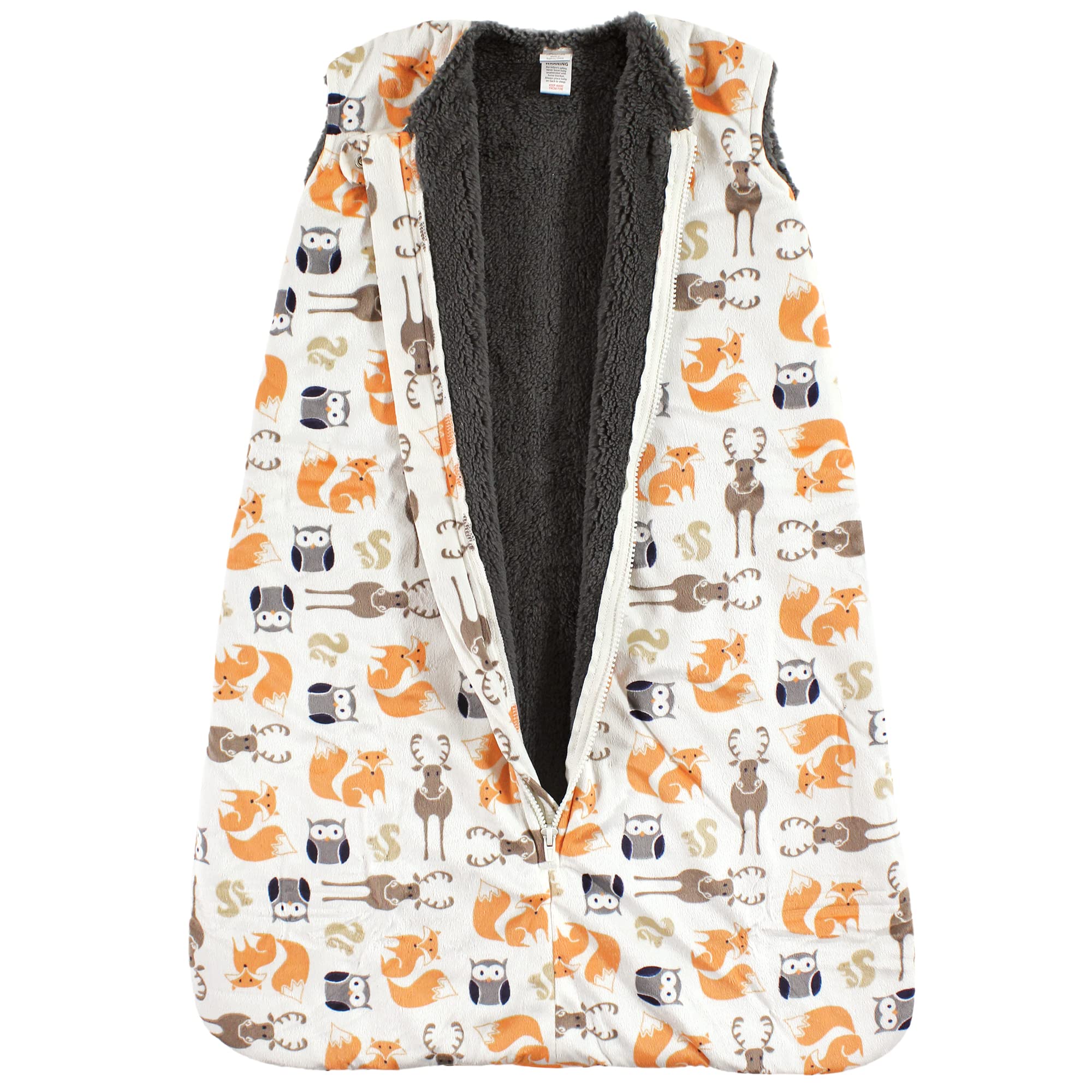 Hudson Baby premium mink faux shearling sleeping bag and wearable blanket is the perfect safe sleep blanket for your little one to have a warm, cozy, comfortable and safe night of sleep. Our fabric is made of soft, delightful, cozy plush material with a warm faux shearling inner layer. Our wearable blanket is designed sleeveless with a light warm plush fabric, providing the perfect balance of keeping baby warm while still keeping baby safe from overheating. Our zipper closure makes for easy on and off dressing, which is especially convenient for night time diaper changes. Our sleep sack will replace loose blankets in the crib and will keep your little one cozy, warm and secure throughout the night. Our sleep sacks, wearable blankets and sleeping bags are always intended to be worn over children's sleepwear.