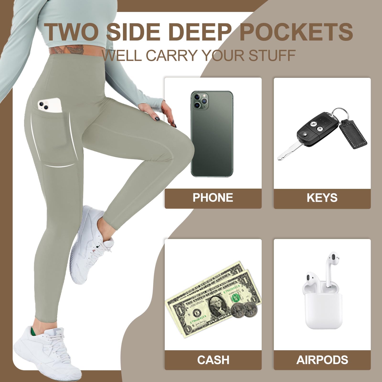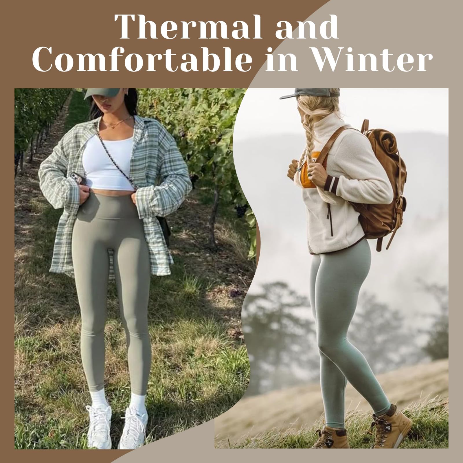 High Waisted & Tummy Control: Women's thermal leggings come with 5.3 inches wide waistband to control your tummy well and fit your body perfectly, 4-way stretch that avoiding rolling down, riding up or slip down with movement