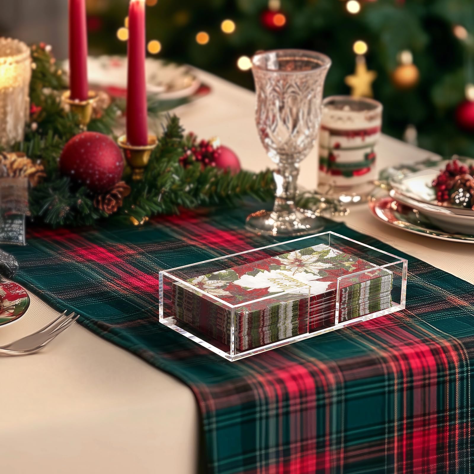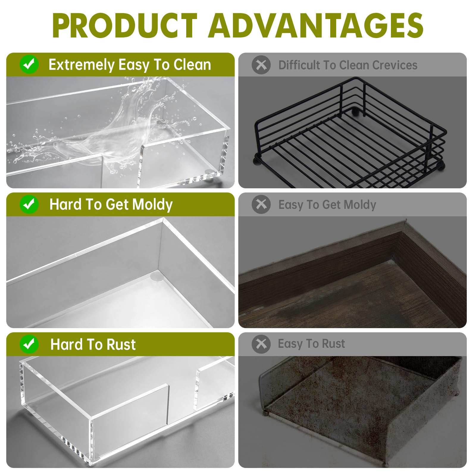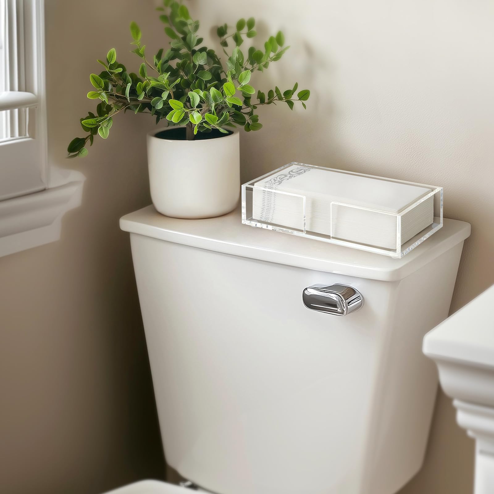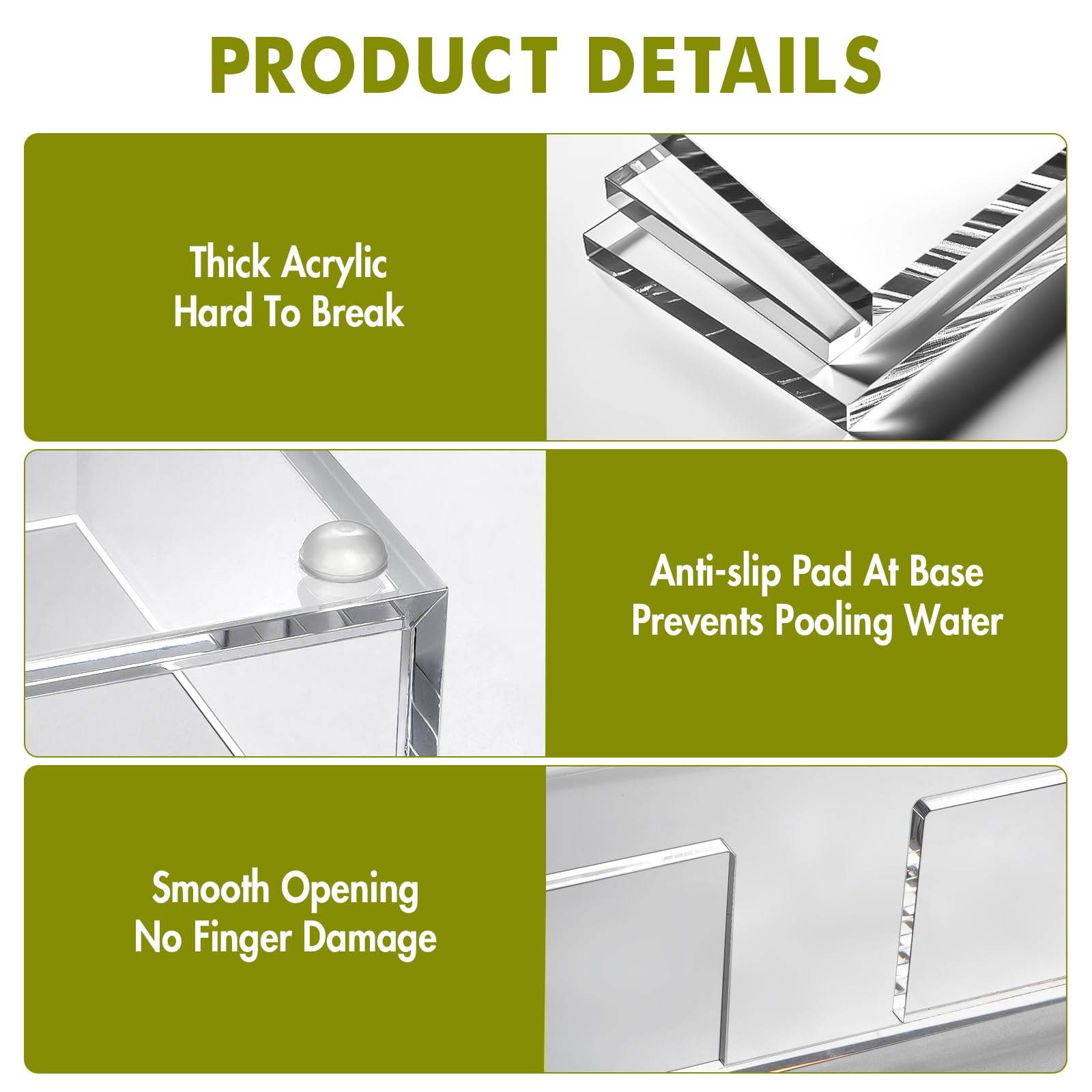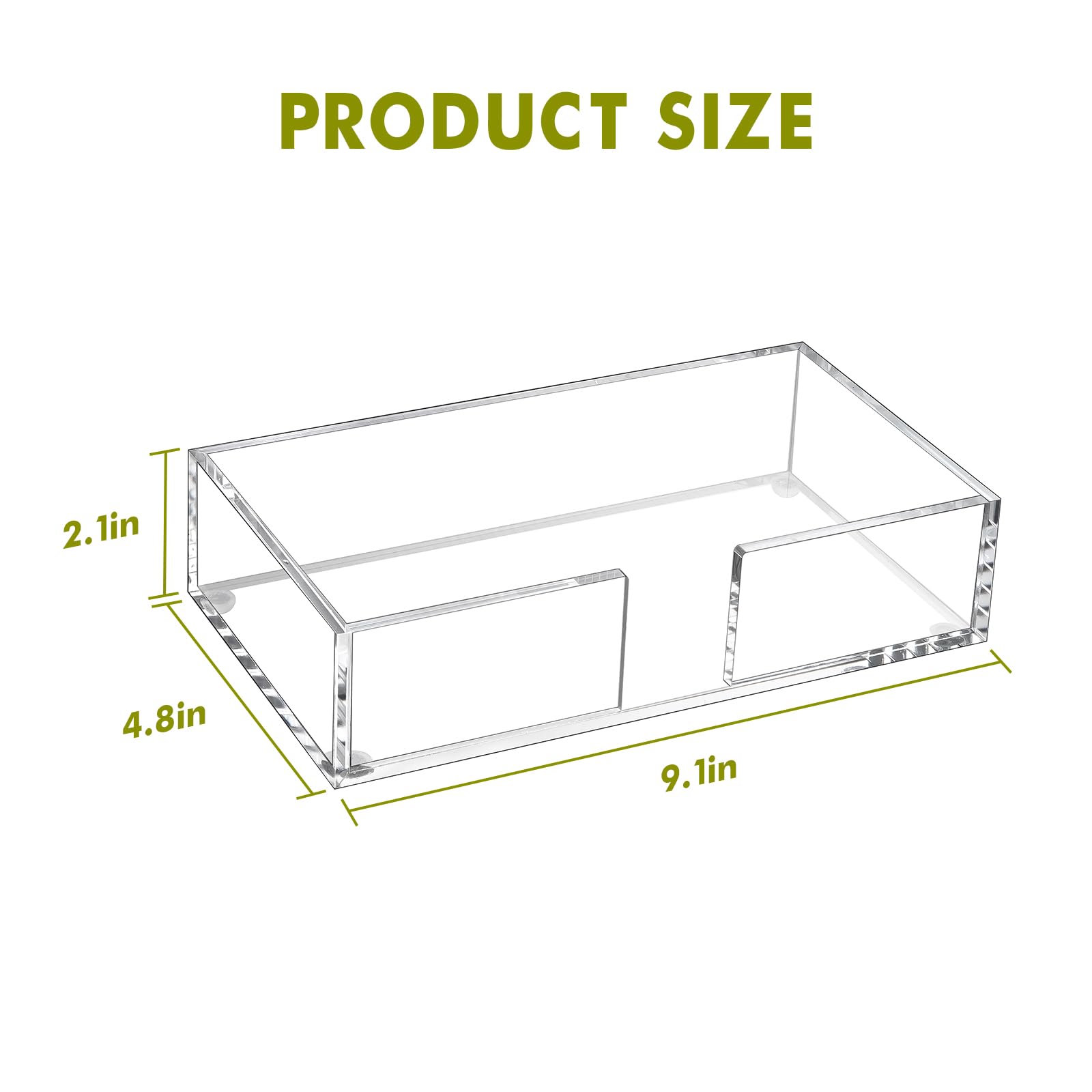 🍃【HIGH-QUALITY MATERIAL, THICK ACRYLIC】The bathroom napkin holder tray is made of high-quality translucent acrylic, thickened material, not easy to break. Not only the appearance is simple and elegant, the texture of the product can surprise you just as much! Product size is: 9.1*4.8*2.1in.
