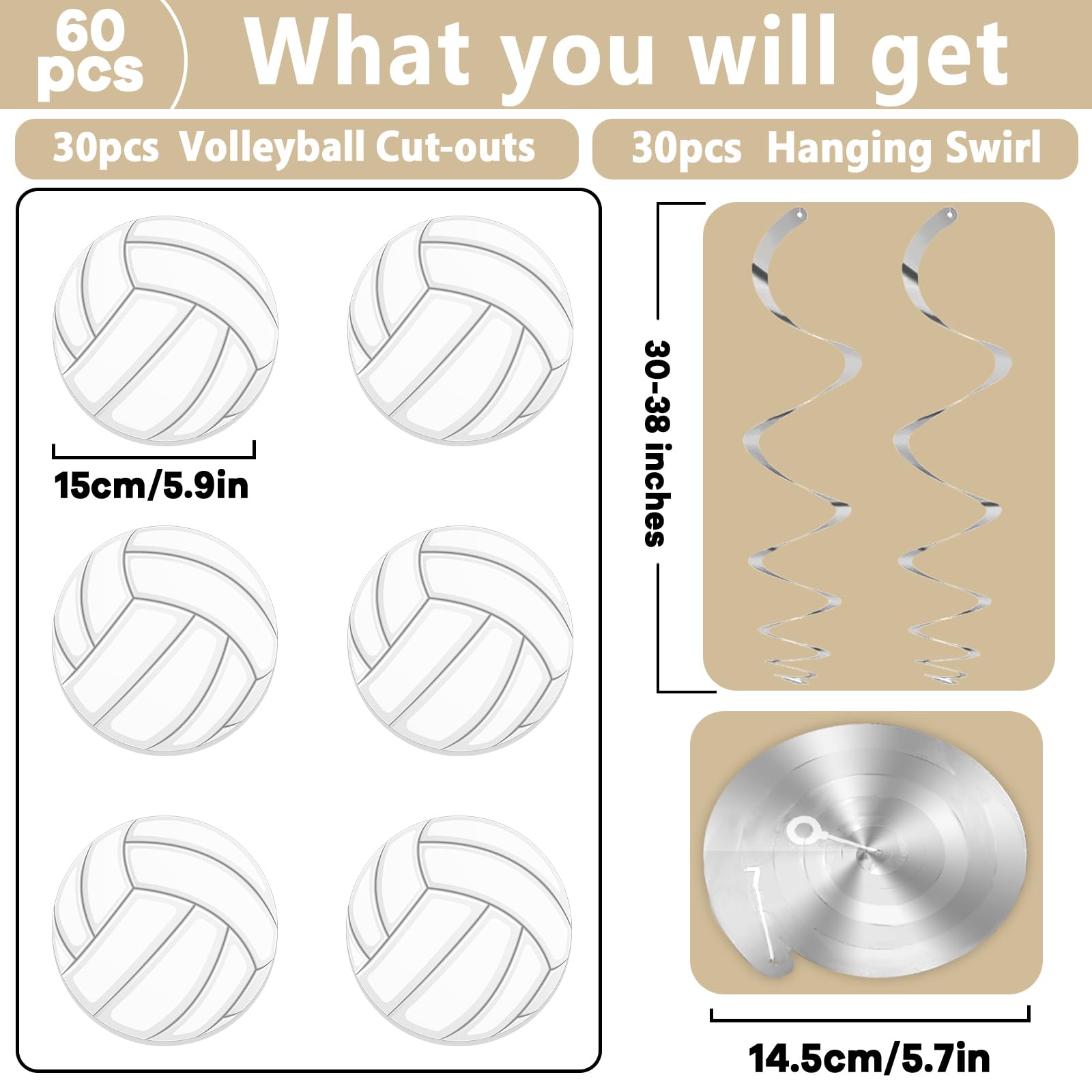 What you will get: Total 60pcs you will get in this package, 30pcs volleyball cutouts and 30pcs foil swirls. Wonderful whirls glitter foil ceiling swirls streamers with plastic hooks for hanging, adequate quantity could meet your sports volleyball party demand.