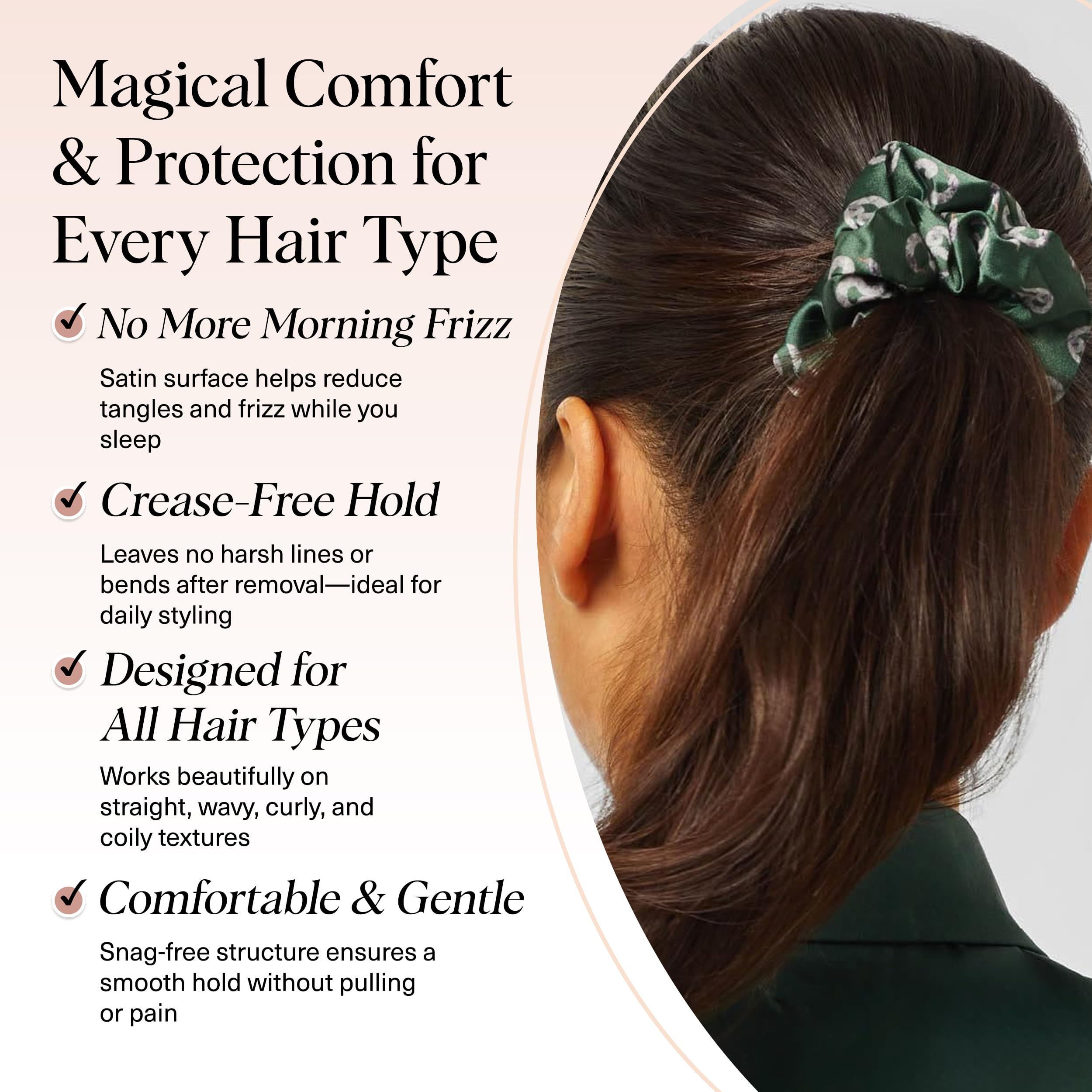 SILKY SATIN PROTECTION: Crafted from luxurious, frictionless satin, these scrunchies by Kitsch protect your hair from frizz, tangles, and tugging. The smooth satin ensures your hair remains sleek and manageable throughout the night.