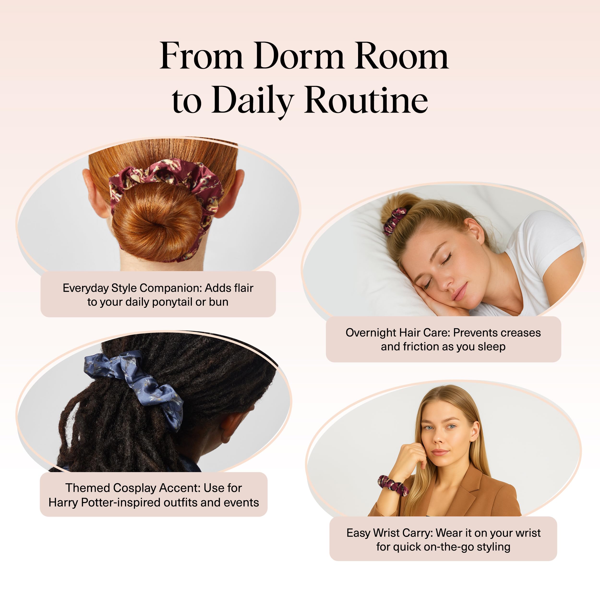 NIGHTTIME ESSENTIAL: Perfect for nightly use, these scrunchies offer a reliable, non-damaging hold that keeps your hair neatly in place. The Harry Potter x Kitsch collaboration brings a touch of magical house pride to your bedtime routine while preserving the health of your hair.