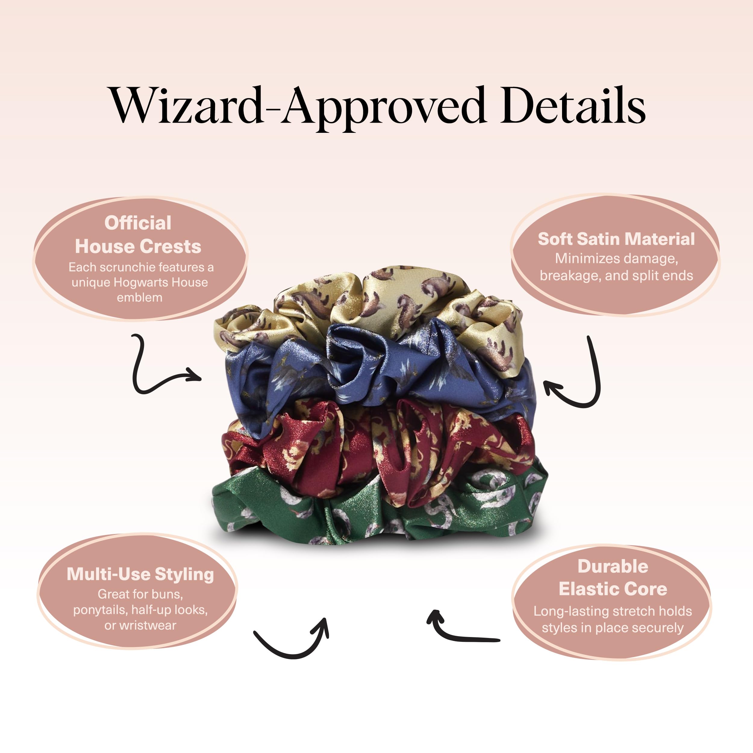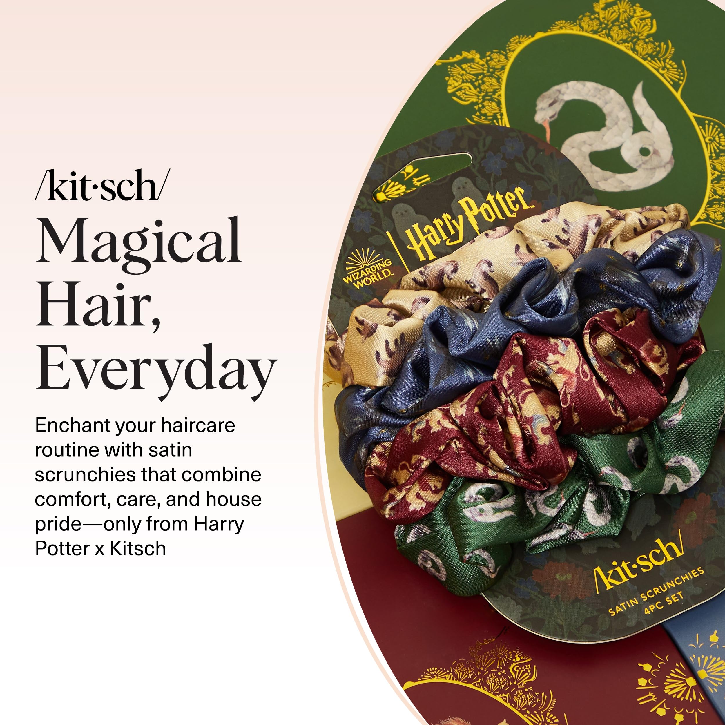 HOUSE PRIDE SET: This set of four sleep scrunchies from the Harry Potter x Kitsch collaboration features each House crest. Represent Gryffindor bravery, Slytherin ambition, Hufflepuff loyalty, or Ravenclaw wit, and showcase your house pride even while you sleep.