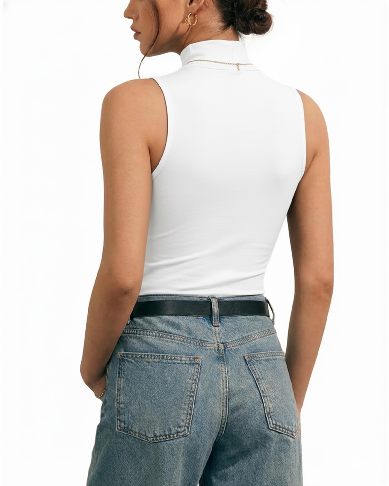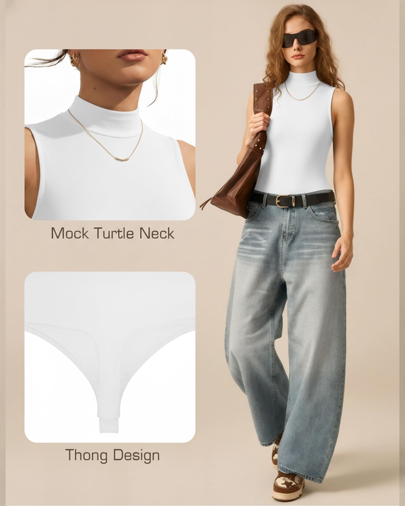 Second-skin Bodysuit Collection: MANGOPOP seamless Mock Turtle Neck sleeveless bodysuit ,offering an incredibly soft, stretchy, lightweight, and breathable feel akin to a second skin