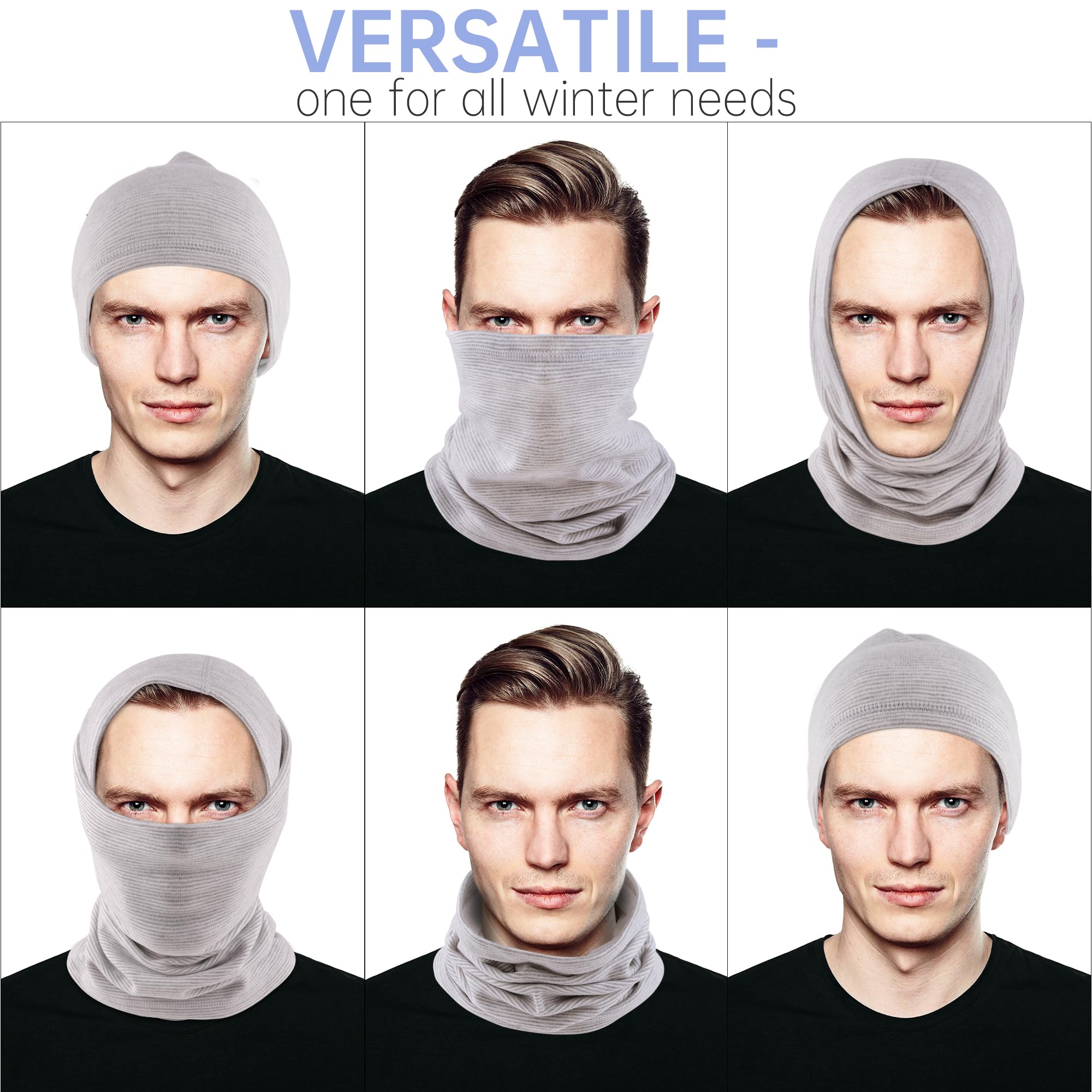 Multifunctional Face Cover: Can be worn as a winter neck warmer, scarf, face cover, half balaclava, beanie, pirate hat or used as a skiing helmet liner.