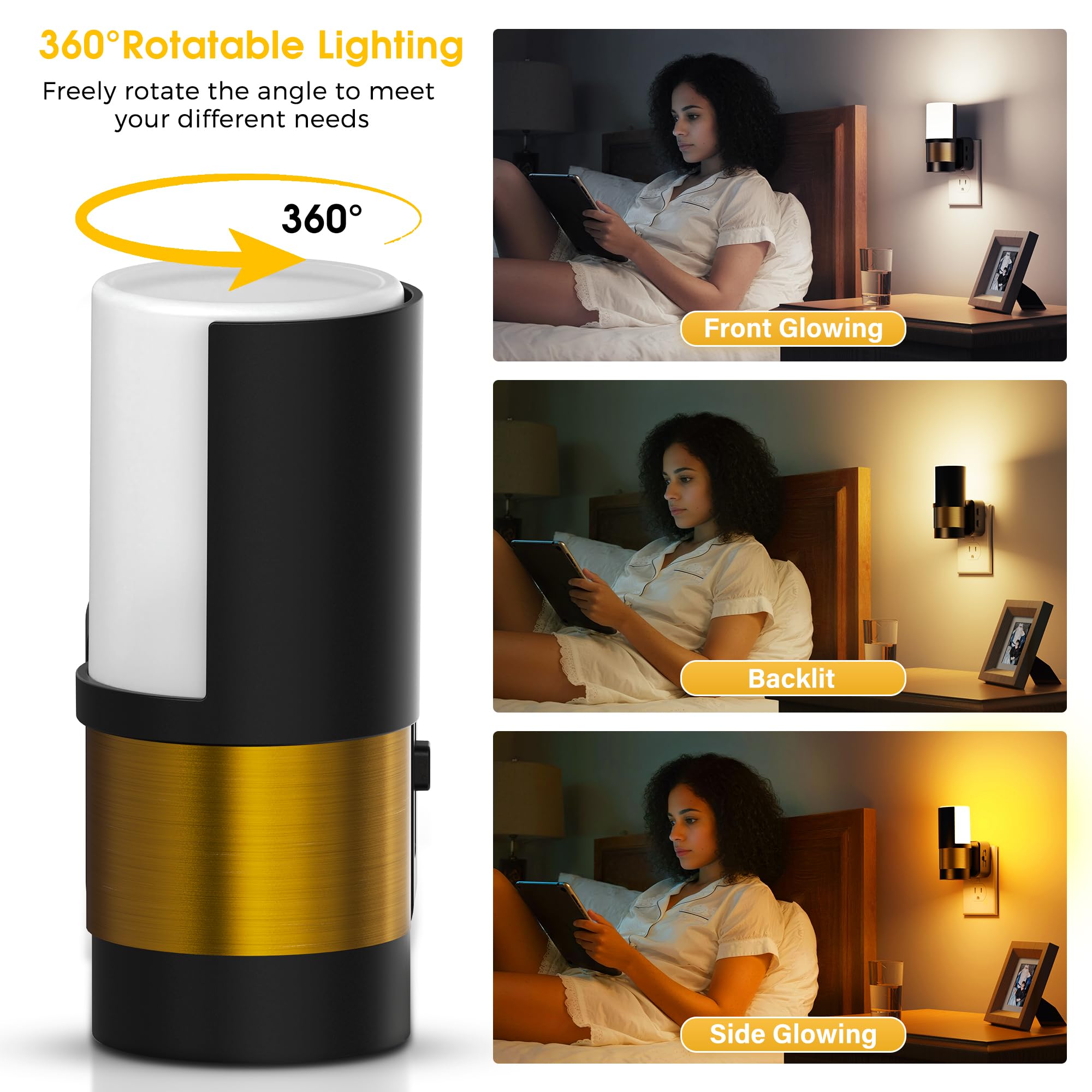 Rotating Night Light: The main body of this bright nightlight can rotate 360 degrees, allowing you to choose different lighting directions as needed. The base part of this hallway night light can rotate 180 degrees, which means it won't block other sockets and helps you save space to a certain extent.