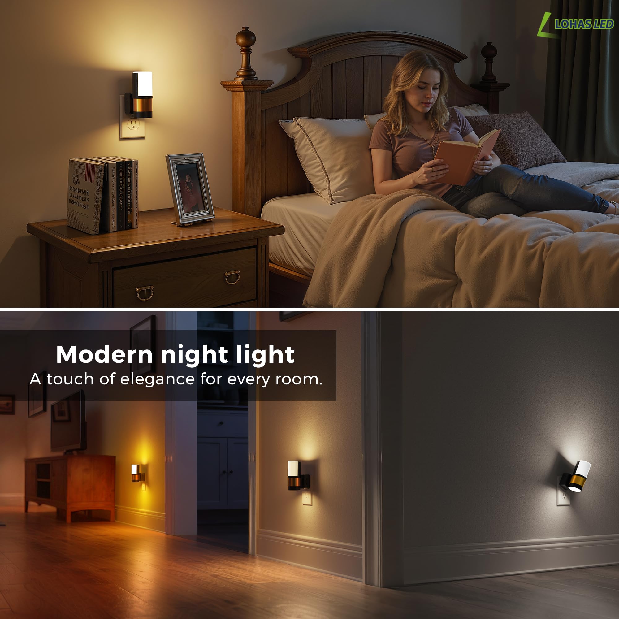 Light Sensor Nightlight Auto on/off: Equipped with a light sensor, the LOHAS night light will automatically turn on at dusk and off at dawn, providing easy, energy-efficient and cosy lighting when you need it.