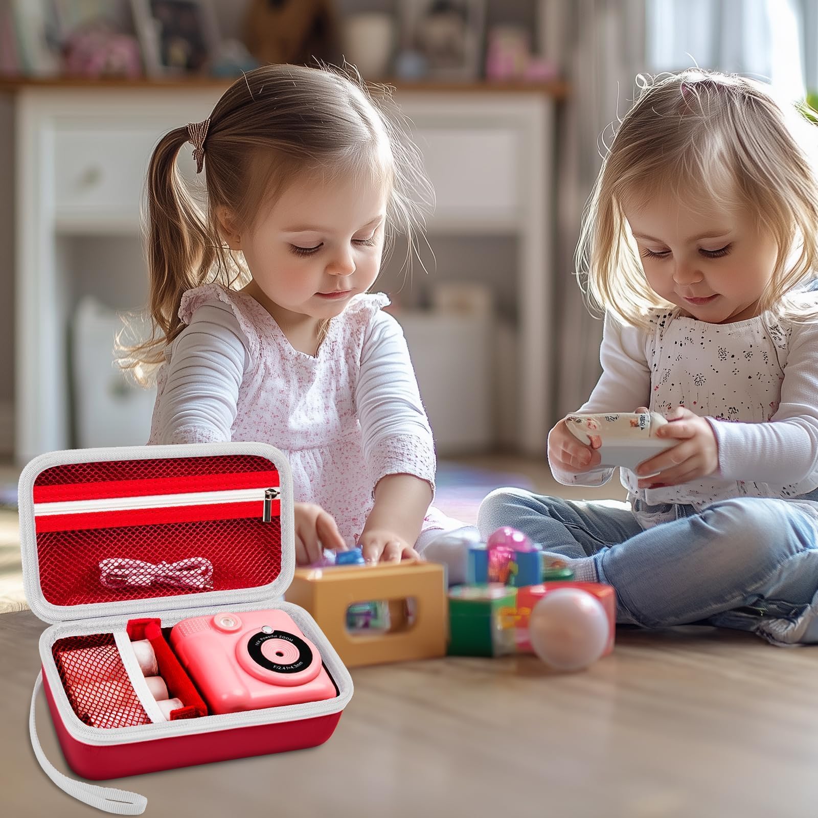 Boy and girl's camera box with effortless organization: Tots digital camera organizer features detachable dividers, allowing you to separate cute camera for girls and printer paper effectively. Say goodbye to friction and keep instant camera in pristine condition. Portable camera case with half mesh pocket inside keeps refill print paper securely in place and no more paper roll mishaps. When opening insta camera container, paper rolls won't immediately fall out and scatter on the ground