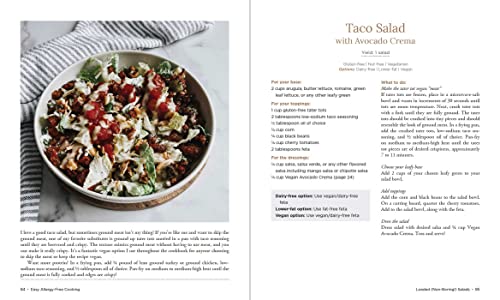//*\\ Winner of the 2024 Bronze Medal at the IPPY Book Awards in the Specialty Cookbooks Category! //*\\ A choose-your-own adventure for the healthy at-home cook! Make recipes that YOU can eat! In Easy Allergy-Free Cooking, Kayla Cappiello's recipes adhere to any allergies or food intolerances while still providing healthy, flavorful meals. It's all-inclusive, letting the reader choose from a variety of milks, grain substitutes, and meat replacements that work for them. Gluten-free, dairy-free, vegan, and vegetariansβthis book welcomes everyone. Kaylaβs recipes focus on resourceful ingredient substitutes to satisfy any dietary need so you never have to miss out on your favorite comfort meals while still providing new and innovative recipes to keep things fresh. She includes inventive rice bowls, artisanal cauliflower pizzas, out-of-the-box baked pastas, and one-pan easy weeknight casseroles, while still keeping allergies and healthiness in mind. Featuring sections on how to stock your pantry with healthy options, outlines for food substitutes based on allergies or dietary restrictions, and meal maps, this book is a friendly guide to getting your nutrition on track without cutting out the foods you love. Packed with easy-to-follow diagrams and vibrant photos, youβll be making these recipes over and over again. Recipes include: Healthy but loaded steak salad with homemade chimichurri vinaigrette Clean-Eating Chopped Italian Goddess Salad with a healthy herbed dressing Sugar-free cinnamon bun French toast Vegetarian Butternut squash and cheddar pizza with chili, honey Caramelized onion and Pear pizza with a white balsamic dressing Simple, 5-ingredient banana bread Salted chocolate and banana bread blondies Youβll love this collection of simple tricks, meal hacks, and 30-minute recipes for the gluten-free, dairy-free, or just plain healthy eater!