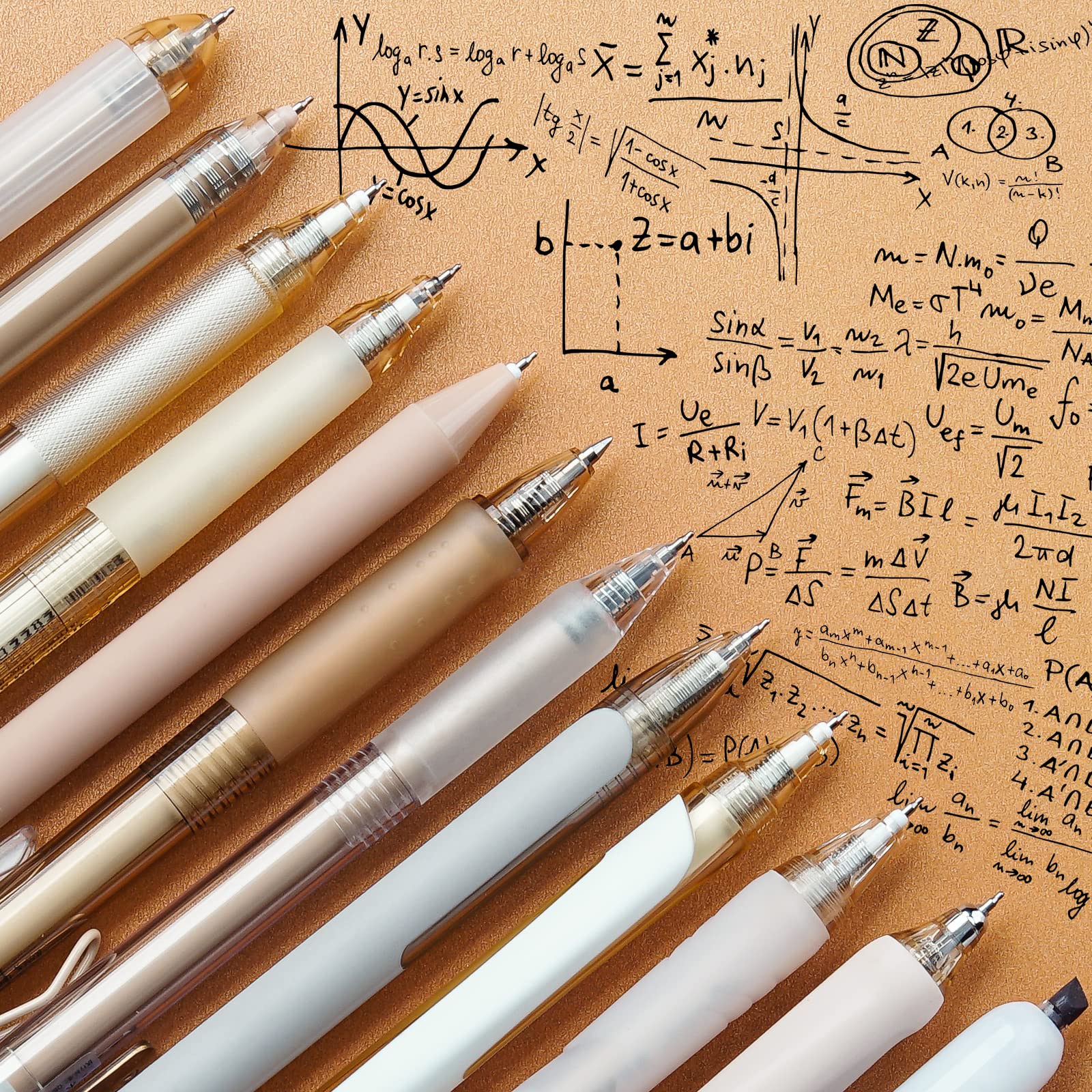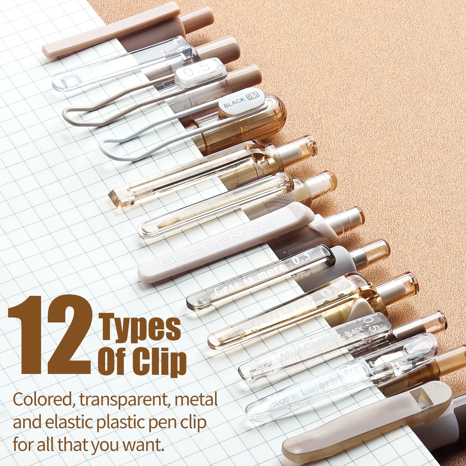 Aesthetic & Coordinated Desk Essentials: A curated set of 12 chic neutral pens in stylish beige/brown tones, blending seamlessly with minimalist decor; Includes 10 black gel pens, 1 brown ink pen, and a matching highlighter