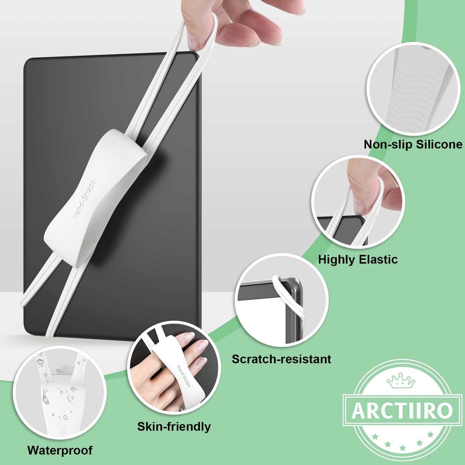 ✅ Universal 4-8" Grip for Kindle: 2 Pack kindle strap holder for hand effortlessly secure any device (4-8") with or without a protective case. Engineered kindle holder with stretchable silicone bands with anti-slip design, it adapts to Kindles, phones, tablets, and e-readers while protecting screens from scratches.