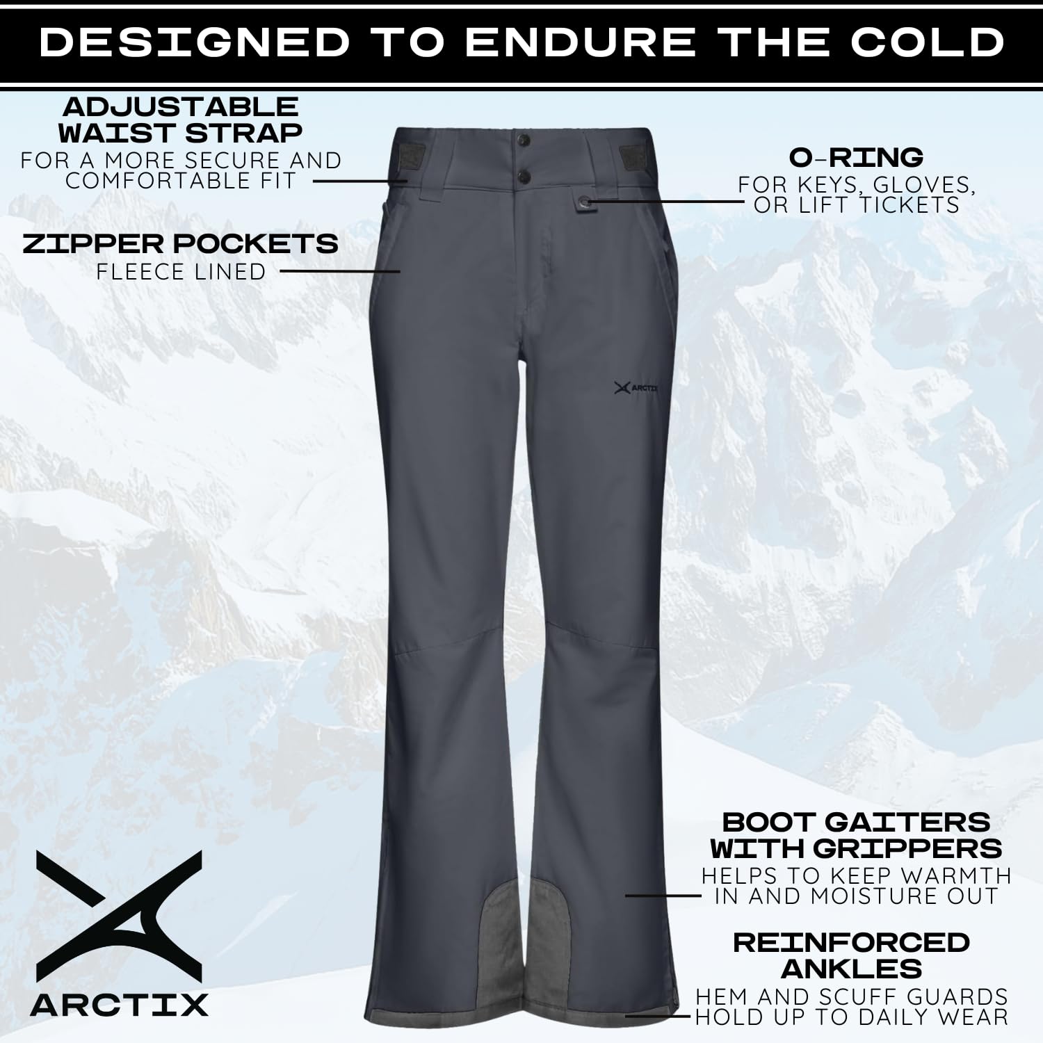 ARCTIX ESSENTIALS: Stay warm and dry with the Arctix Women's Essential Insulated Ski Pants. These durable, water and wind resistant snow pants for women offer all-weather protection, lightweight THERMATECH insulation (85 grams), and a customizable fit to keep you comfortable in the cold. Reinforced, sealed seams provide added protection against the elements.