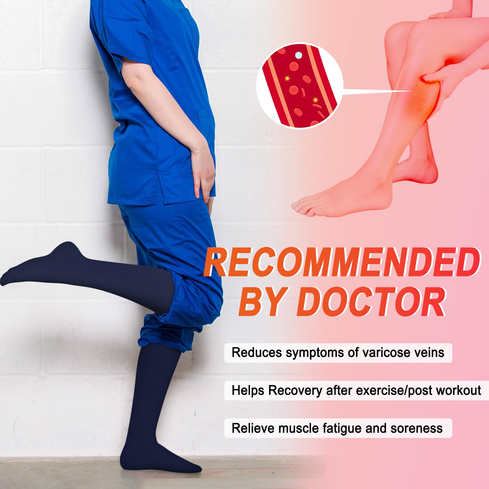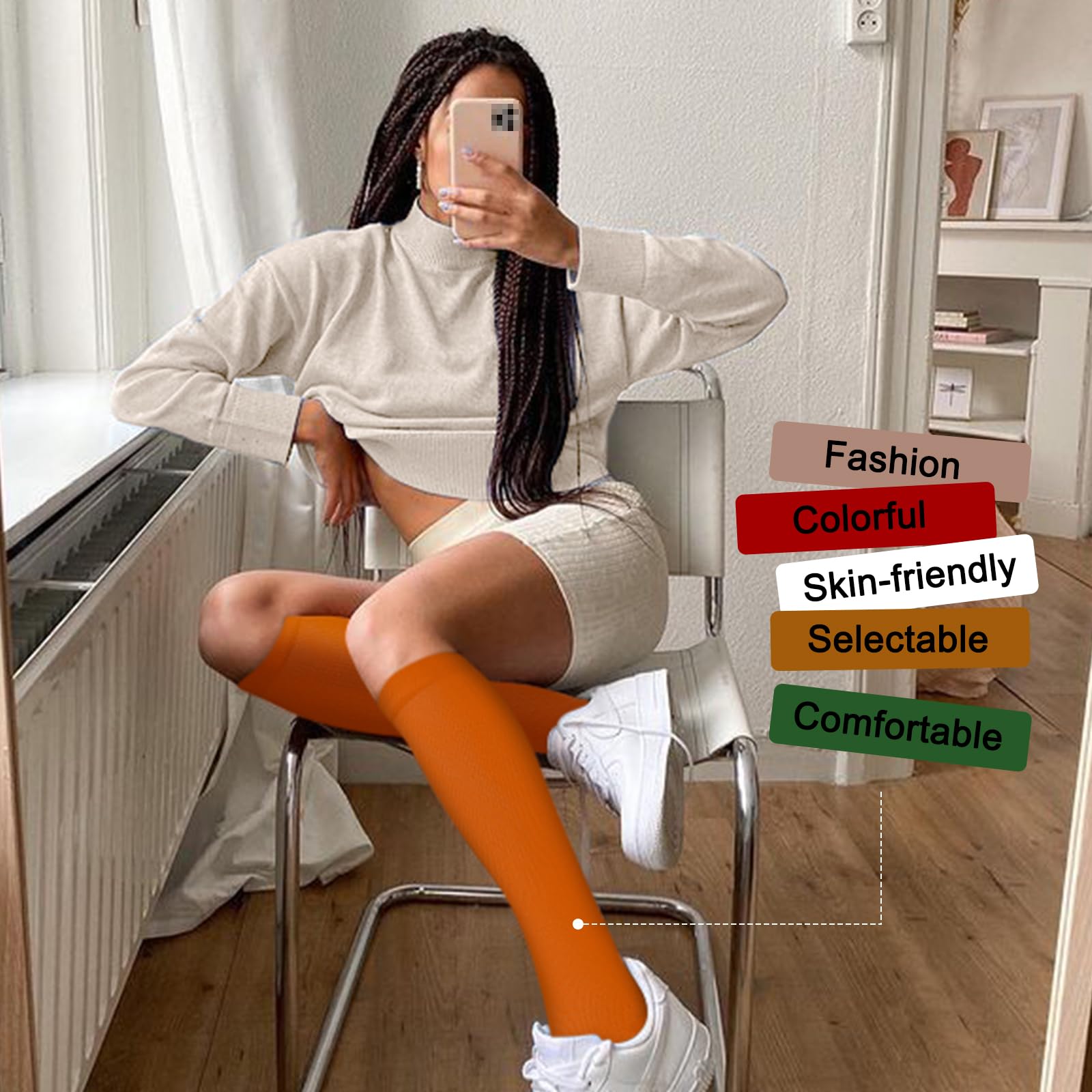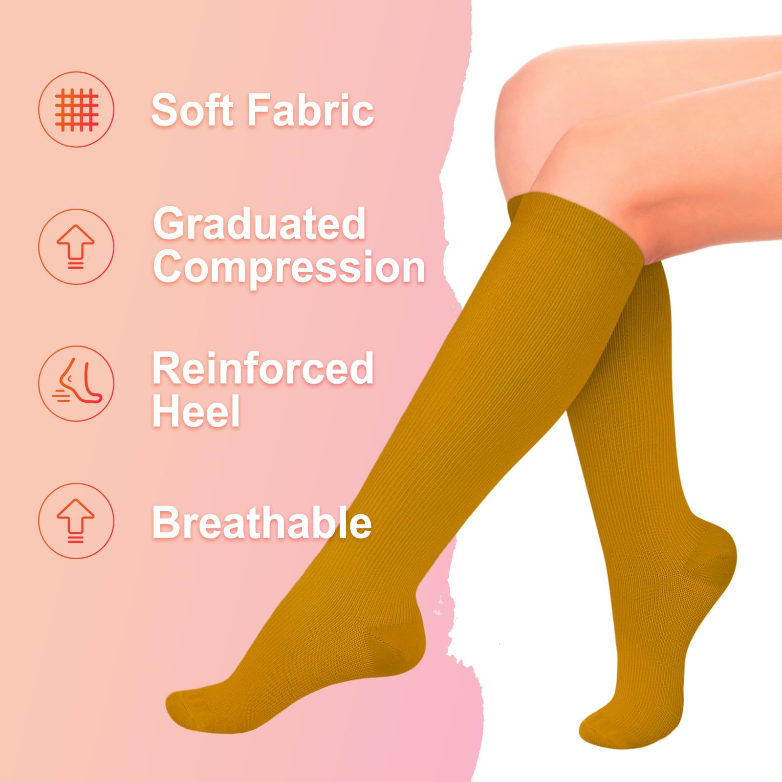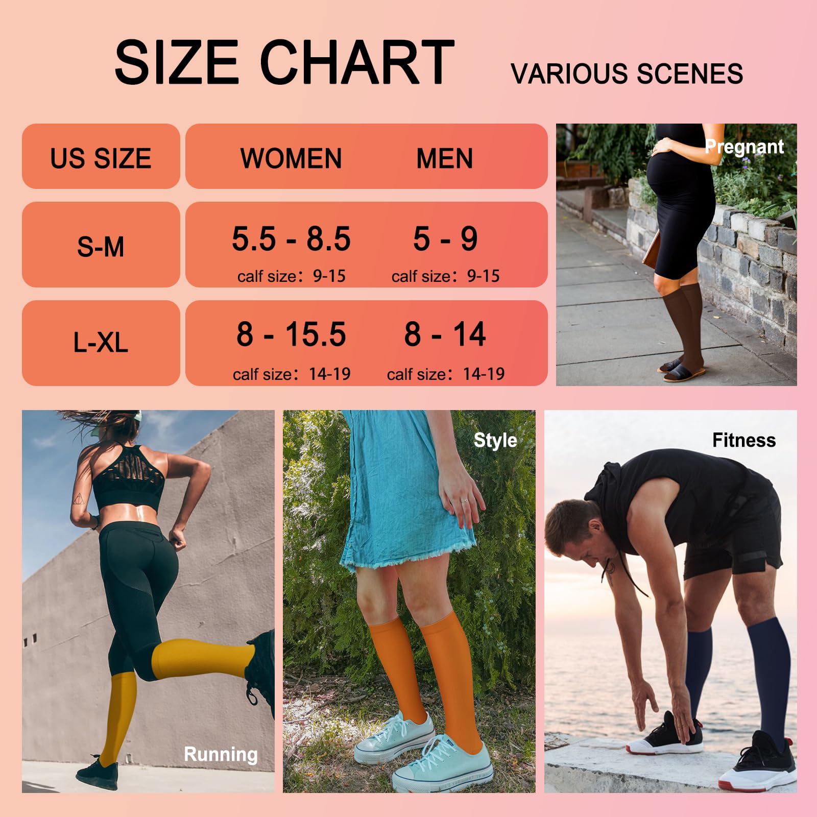 COMFORTABLE WEARING EXPERIENCE - Our compression socks fit snugly from toe to calf, injecting vitality into your skin. Delivers 360-degree stretch for greater flexibility and durability, without leaving marks on your skin. Wide Top Comfort Band Keeps the socks from pinching,chafing,or rolling down. All-Day comfort,support & energy,perfect for your active lifestyle.