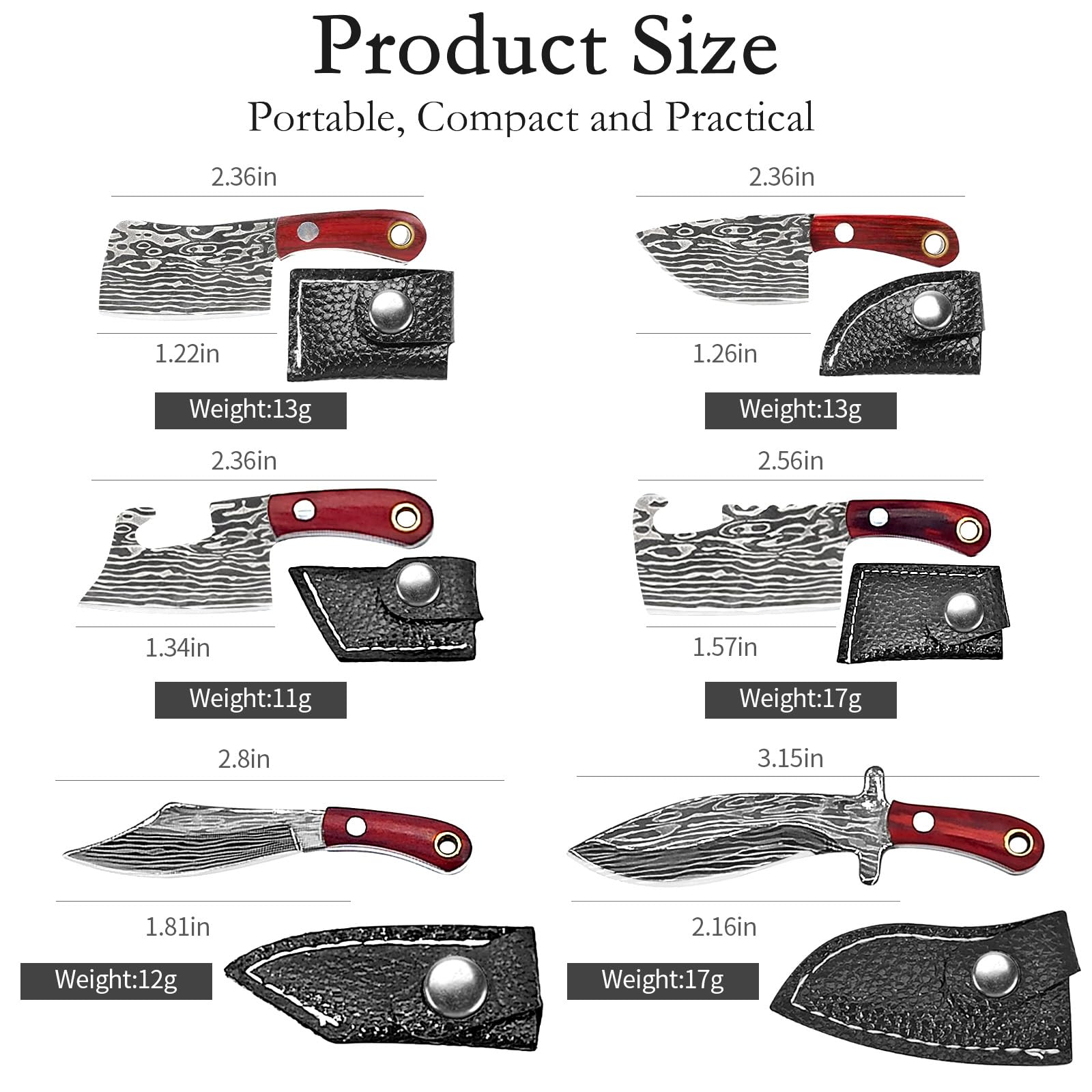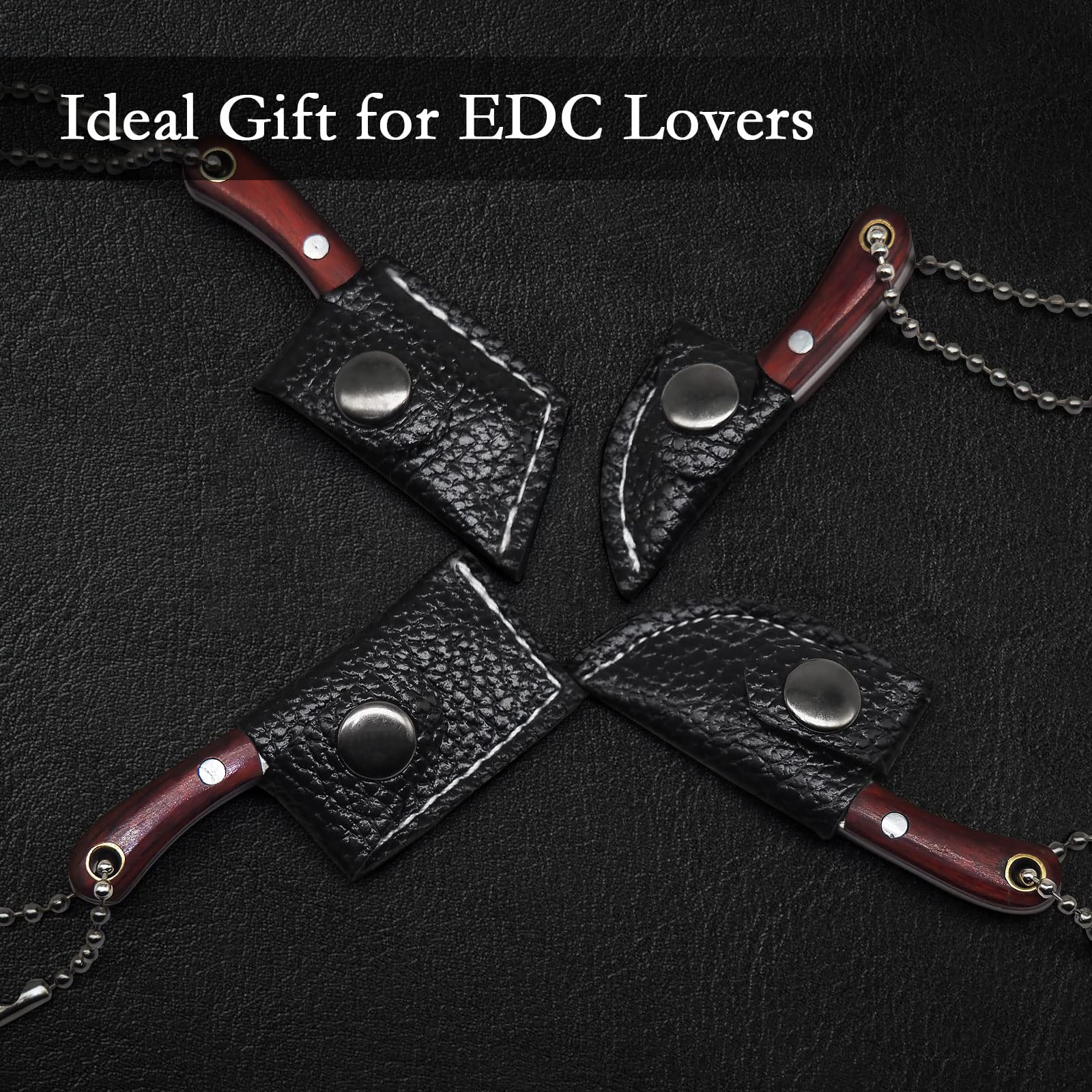 Easy to Carry:This keychain knife can be attached to your keychain or carried in your pocket. Each small tiny knives has a sheath. When not in use, it can be placed in the leather case, so it is easy to carry and take it at any time