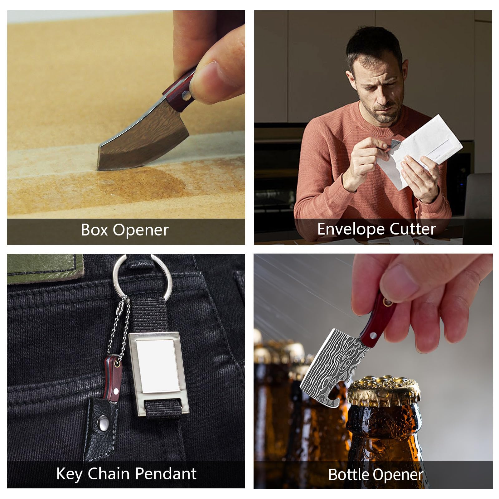 Multi Purpose use:The exquisite mini knives set can be used as a keychain box cutter, letter opener, fruit knife, and it can also be hung on keychains, backpacks, and chest bags for decoration, which is very practical and cool