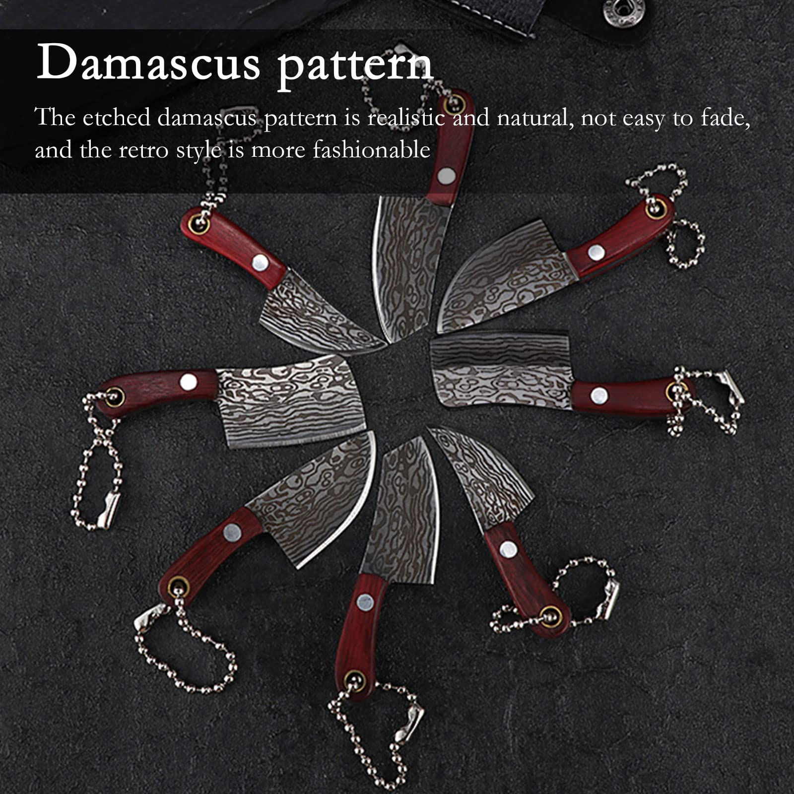 Retro Design:The blade of the damascus tiny knife set is made of high quality stainless steel material, the blade is not easy to rust, and the handle is made of solid wood, easy to hold, it's a cool pocket chef's knife