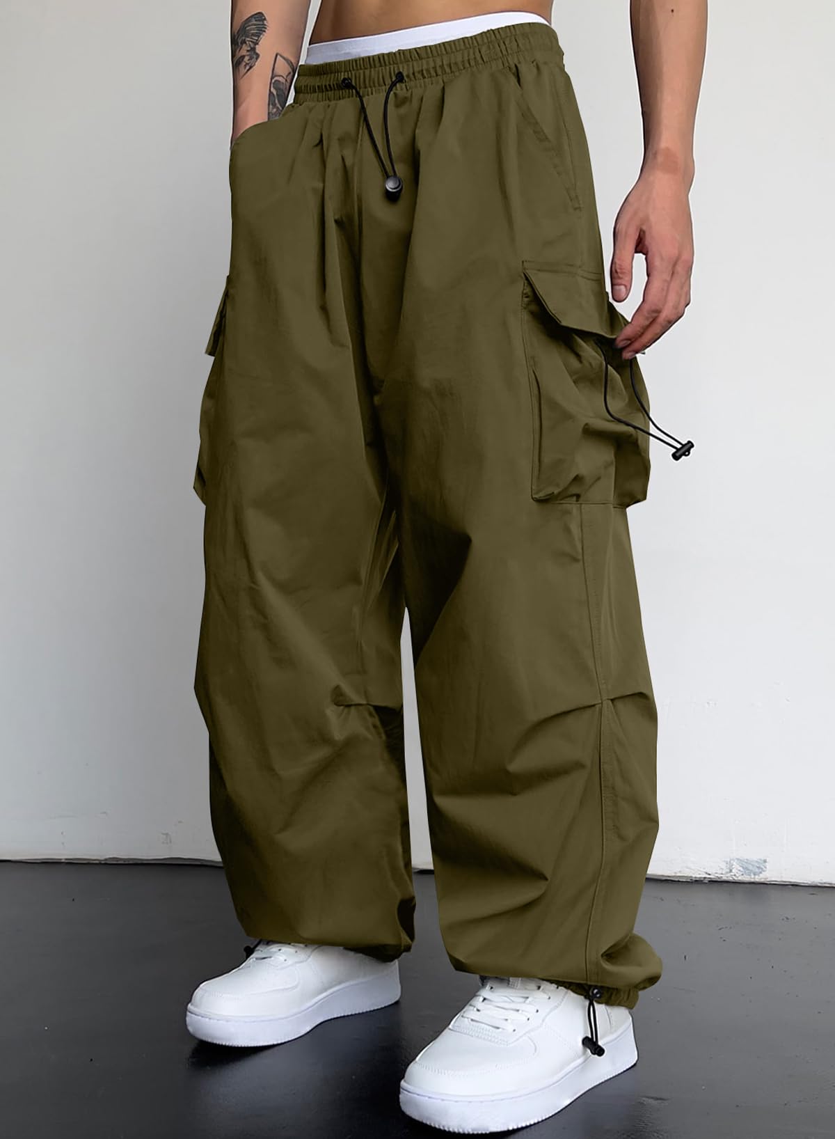 Trendy Design: JMIERR's men's cargo pants blend parachute pants design with a wide flare leg, reminiscent of 90s hippie grunge style. Featuring a unique and bold look, these pants include an elastic waistband, adjustable drawstrings, and 4 pockets, making them a super chic addition to any stylish men's wardrobe.