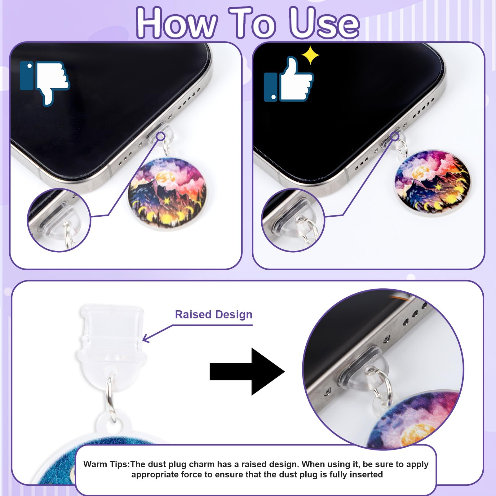 【Warm Tips】Our dust plug charms is designed with a raised plug to prevent it from falling off, which means it needs to be pushed deeper to ensure a tight fit. When using, please make sure to apply appropriate force to ensure that the dust plug charm is fully inserted, thereby achieving a more stable installation and providing more reliable protection for your device