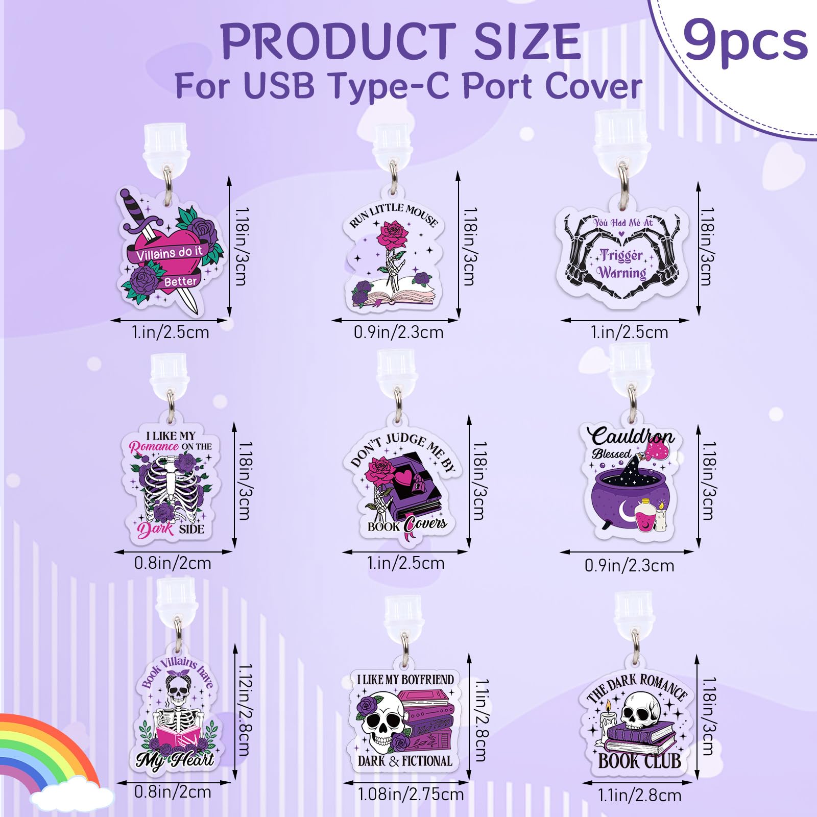 【Dark Romantic Dust Plug Design】You will receive 9 unique dust plug charms, each about 1 inch in size. These charming accessories feature charming elements such as skulls, roses, butterflies, books, etc., adding a touch of dark elegance and sincere style to your e-reader or mobile phone