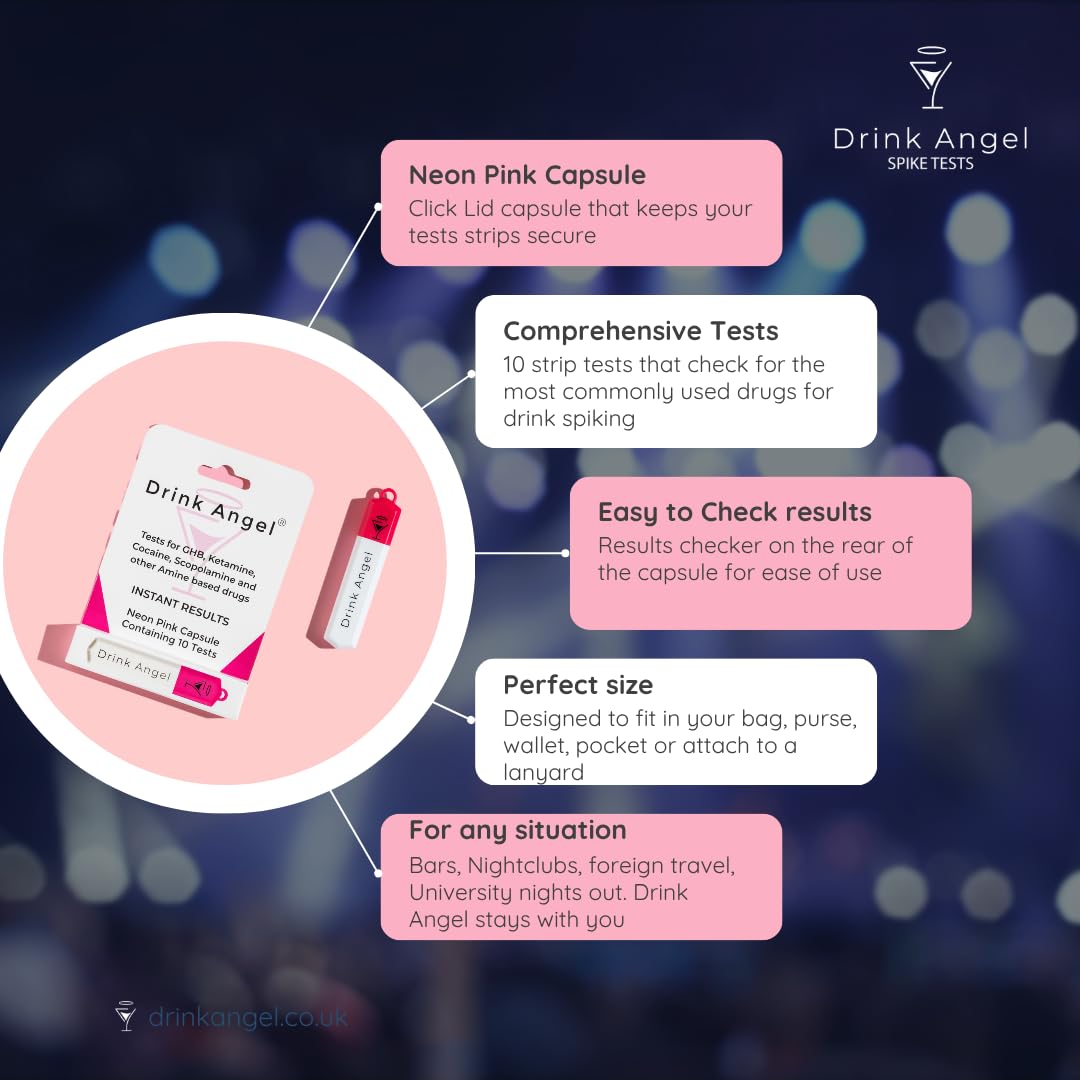 ABOUT DRINK ANGEL: Drink Angel develops innovative, clinically tested safety tools to prevent drink spiking. With rigorous trials, customer driven design and a mission to protect nightlife communities, we help you enjoy safer nights out.
